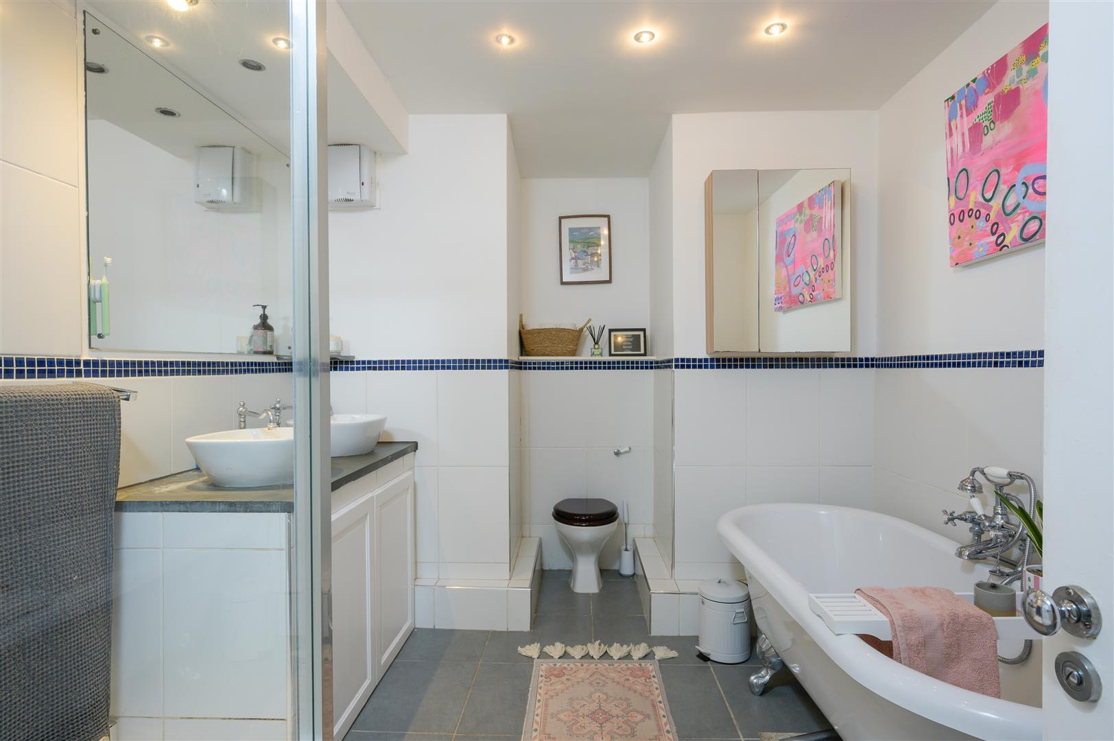 Accommodation - This fantastic courtyard apartment has its own private entrance and offers spacious, light and airy accommodation throughout and retains a number of attractive period features including original sash windows with working shutters. There is a large, welcoming, entrance hallway with attractive flooring. A generously proportioned master bedroom with built-in wardrobe space which looks into the entrance courtyard. A tiled well-proportioned bathroom offers under floor heating, a large walk-in shower as well as a claw foot bath and dual wash hand basins. Further to this, the sociable kitchen space offers a comprehensive range of modern base and wall units and a generously proportioned reception room looks into the attractive rear courtyard garden. This room also has an appealing feature fireplace as well as attractive timber flooring. To the rear of the property the second bedroom offers a spacious double room and also overlooks the courtyard garden. As an additional point of interest, we understand that that there was historically planning permission granted (now lapsed) and listed building consent, in place to add an ensuite to this second bedroom from the area of vaulted storage directly behind that is presently accessed off the rear courtyard garden (see floorplan) which this property enjoys the use of.