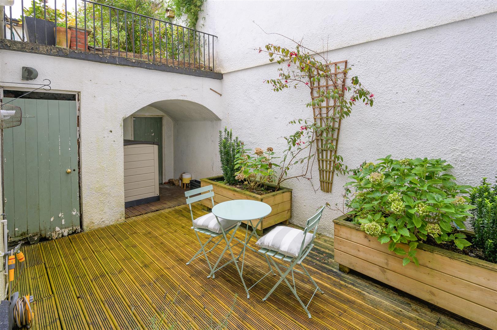 Externally, the courtyard garden enjoys a southerly aspect has been attractively decked and offers a calm, tranquil spot to sit out. To the rear of the courtyard are two doors providing access to vaults (as shown on the floor plan) which this property has the exclusive access to. One of these had the aforementioned planning permission to convert it in to an ensuite for the second bedroom. It should be noted that the additional vaults located behind the property do not form part of the legal title of the property within the lease plan despite being the only flat with access to them.