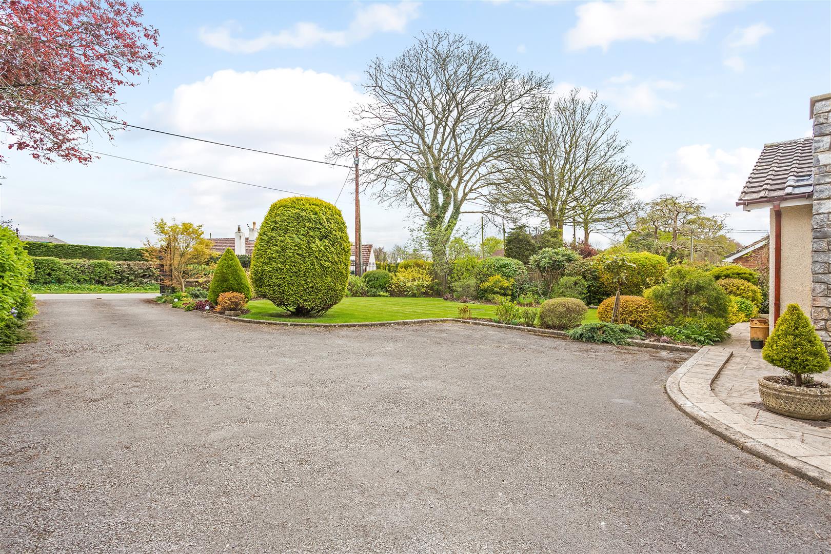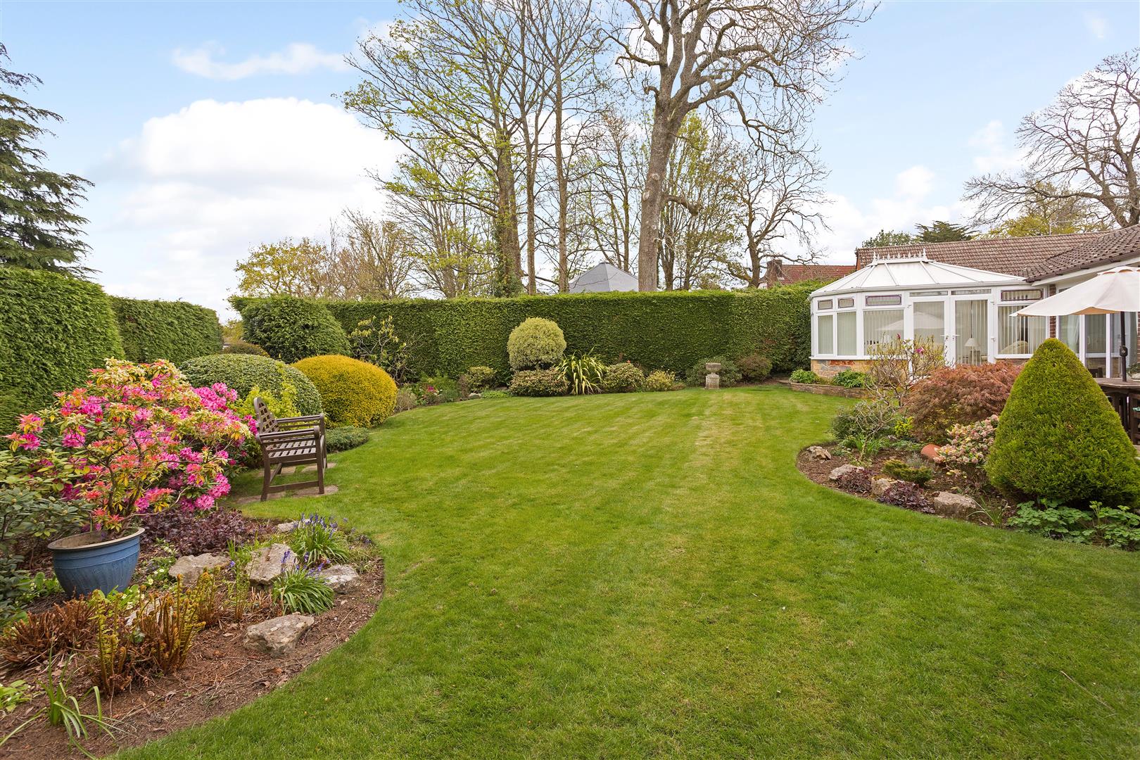 The front garden is attractively landscaped and laid to level lawn with a Tarmacadam driveway accessing Weston Road via automated entrance gates. Ample room for 4/5 cars. The level lawn is surrounded by mature flowerbeds with a wide variety of plant life. External lighting
