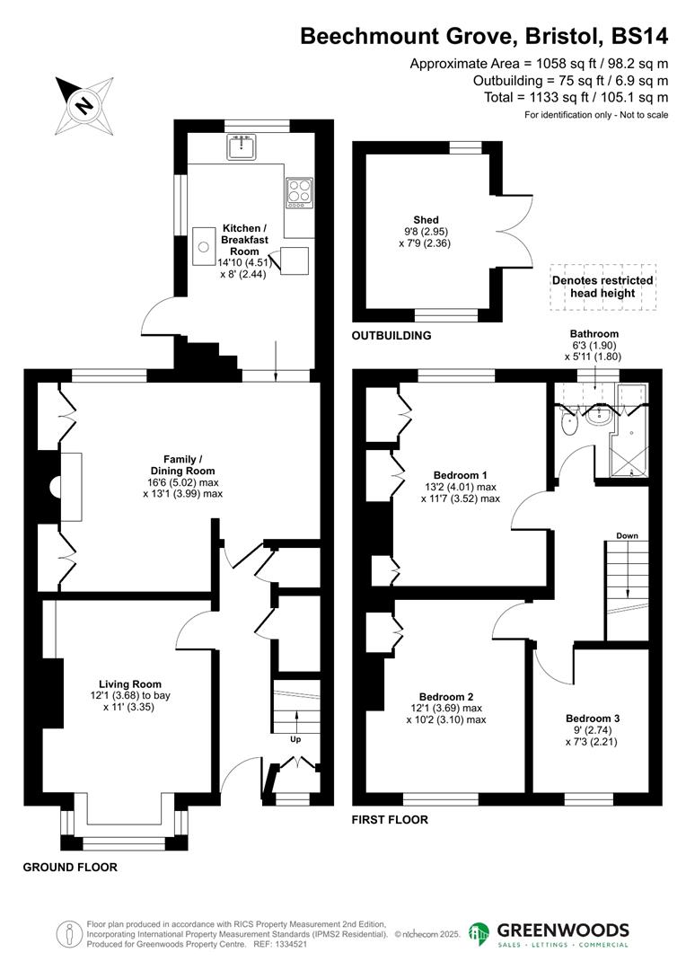 Upstairs are the three bedrooms, two of which are doubles, the largest of which spanning an impressive 13'2 x 11'7 ft again with further storage space built in,.