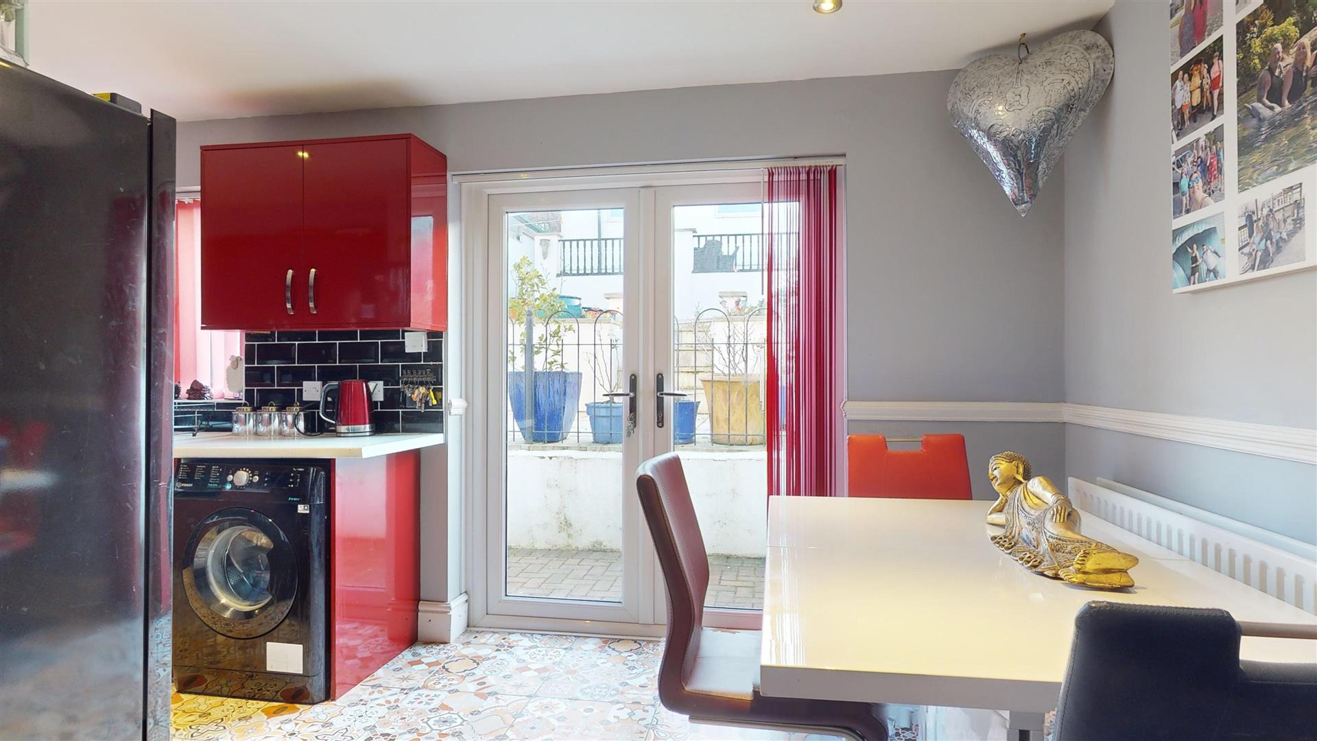 This beautifully presented semi-detached property, located on the sought-after Airport Road in Hengrove, offers a fantastic blend of character and modern living. As you enter, you are greeted by a welcoming entrance hallway, leading to a bay-fronted sitting room that exudes charm. The spacious dining room has been thoughtfully opened up to a stunning high-gloss kitchen, creating an ideal space for family meals and entertaining. French doors from the kitchen provide seamless access to the elevated garden, perfect for outdoor relaxation. A convenient shower room is also located on the ground floor.