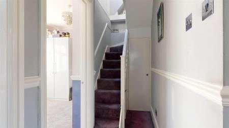 Upstairs, you'll find three well-proportioned bedrooms, two of which feature built-in storage, offering excellent space for all your belongings. The family bathroom is fitted with a classic white suite. In addition, the property boasts a versatile loft room, providing additional space for a home office, playroom, or storage.