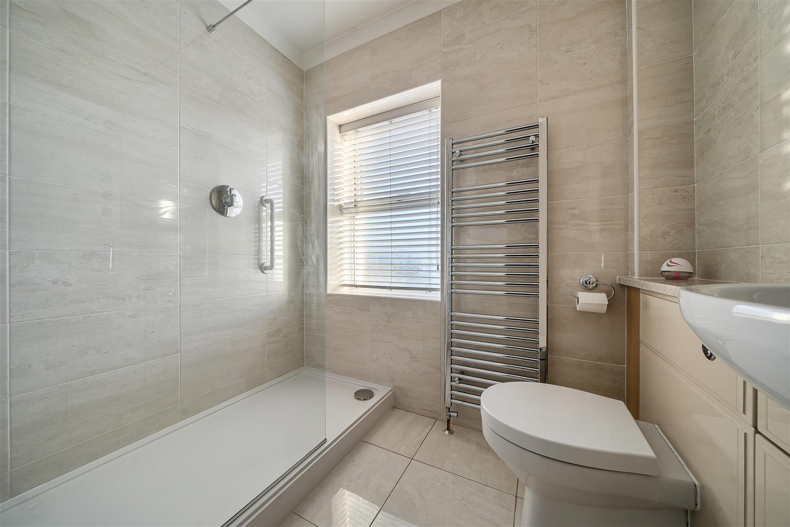Shower Room - 2.1m x 1.7m (6'10" x 5'6" ) - Double glazed window to rear aspect, walk in shower cubicle off mains, vanity unit with a wash hand basin and a WC with hidden cistern. Wall mounted mirror, fully tiled walls and flooring, heated towel rail and shaving power points.