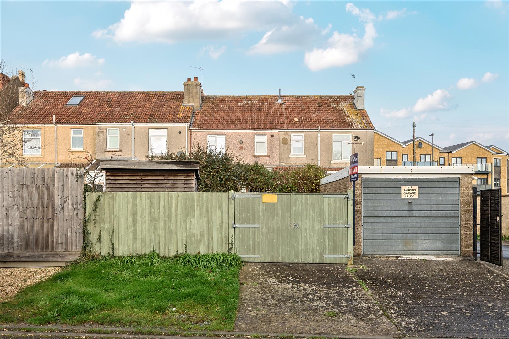 Parking - Located at the rear of the garden, accessed via dropped kerb through double gates that lead to a hardstanding parking area.