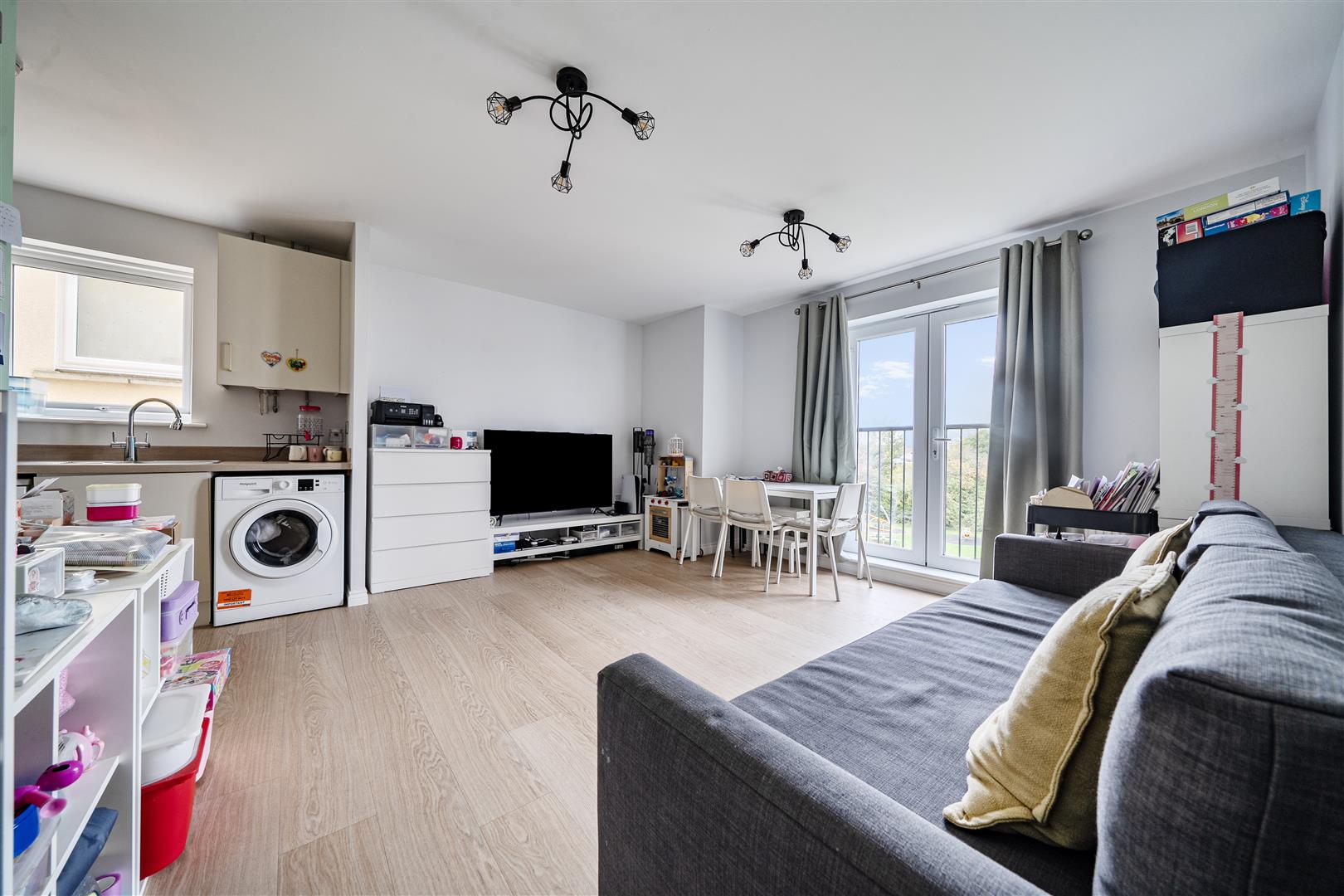 Lounge - 4.5m x 4.4m (14'9" x 14'5" ) - Double glazed French doors to Juliette balcony to front aspect enjoying views of adjoining green space, radiator, power points, opening leading to kitchen.