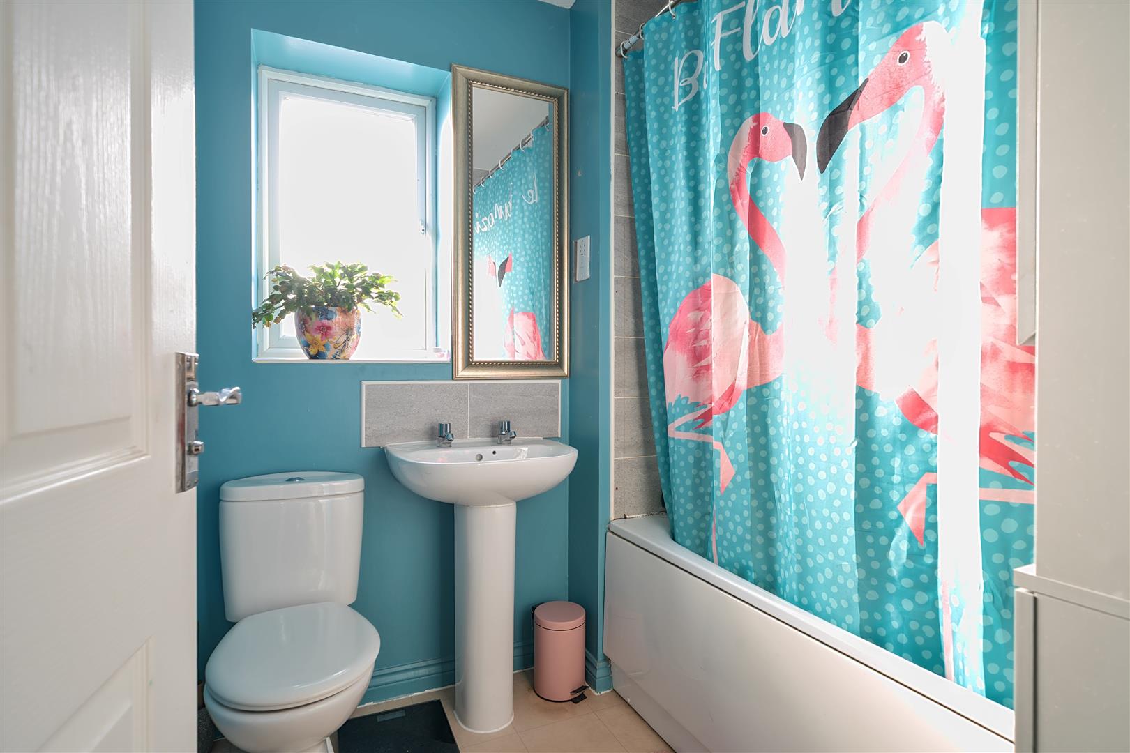 Bathroom - 2.1m x 2m (6'10" x 6'6" ) - Obscured double glazed window to rear aspect, modern matching three piece suite comprising pedestal wash hand basin, low level WC, panelled bath with shower off mains supply over, heated towel rail, extractor fan, tiled splashbacks to all wet areas.