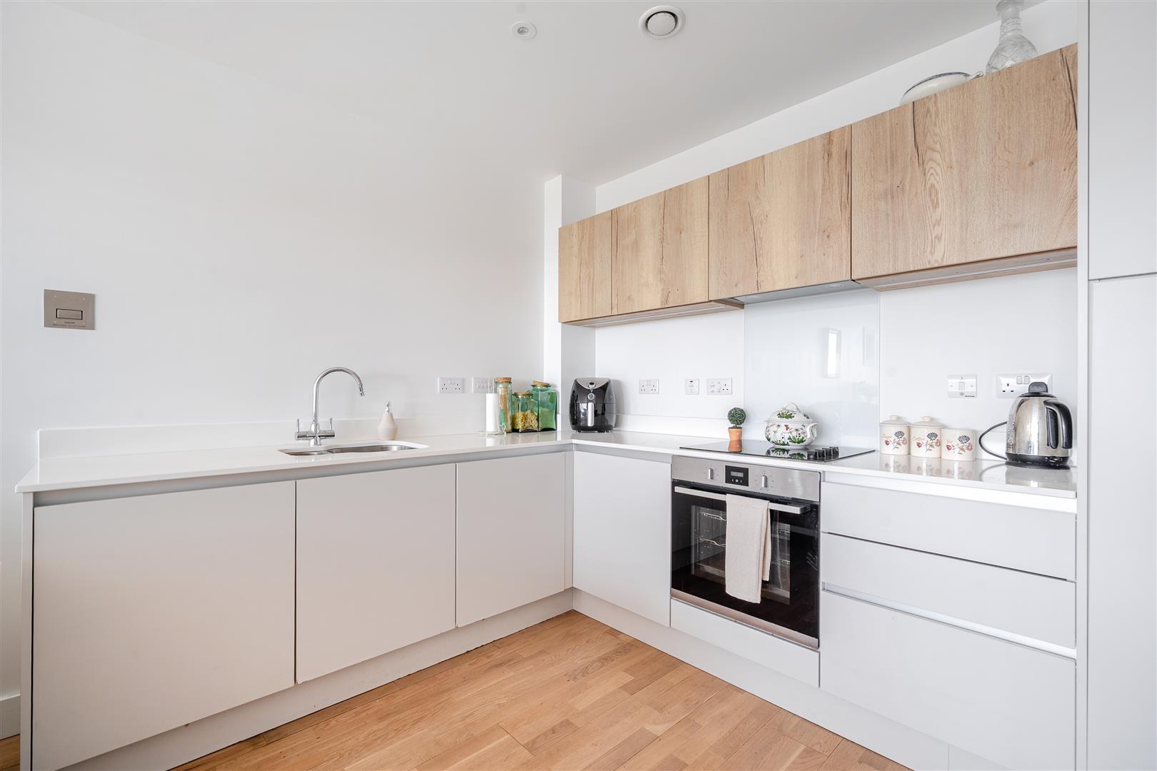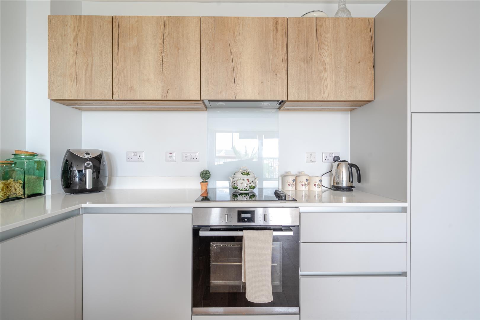 Open Plan Lounge/Dining Room/Kitchen - 3.4m x 3.8m (11'1" x 12'5" ) - Double glazed windows and French doors to front aspect to Juliette balcony that enjoys town centre views. Kitchen comprising range of soft close wall and base units with Quartz work surfaces over, inset bowl and a quarter sink with mixer tap over, range of integrated appliances including electric Neff oven, four ring electric hob with extractor fan over, fridge, freezer, washing machine and dishwasher. Power points, splashbacks to all wet areas. Lounge and dining area offering ample space for several sofas and family sized dining table, power points, electric radiator.
