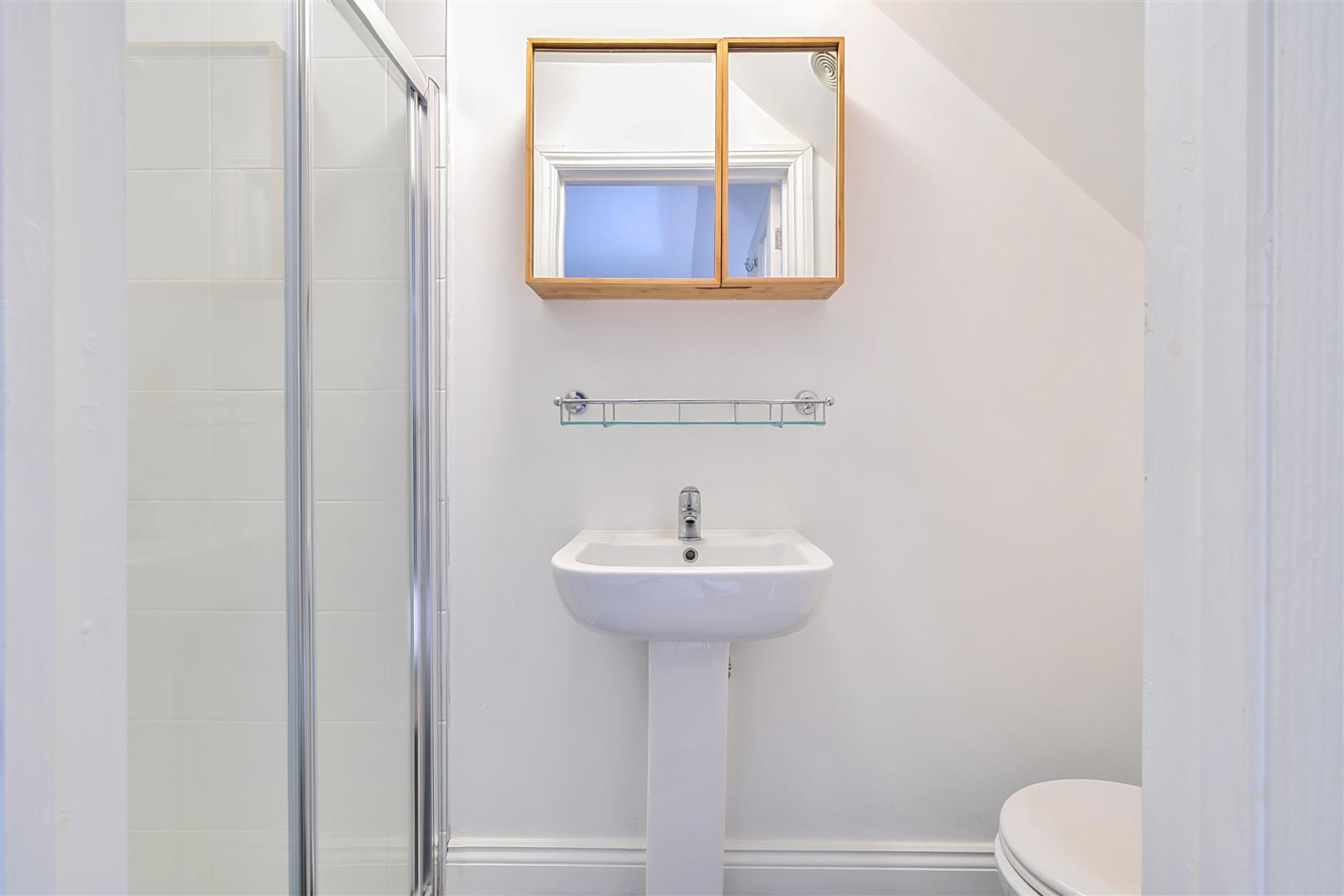 En Suite - 2.4m x 0.8m (7'10" x 2'7" ) - Walk in shower cubicle with folding door and wall tiles to area, pedestal wash hand basin with mixer tap over and a low level WC. Tiled flooring.