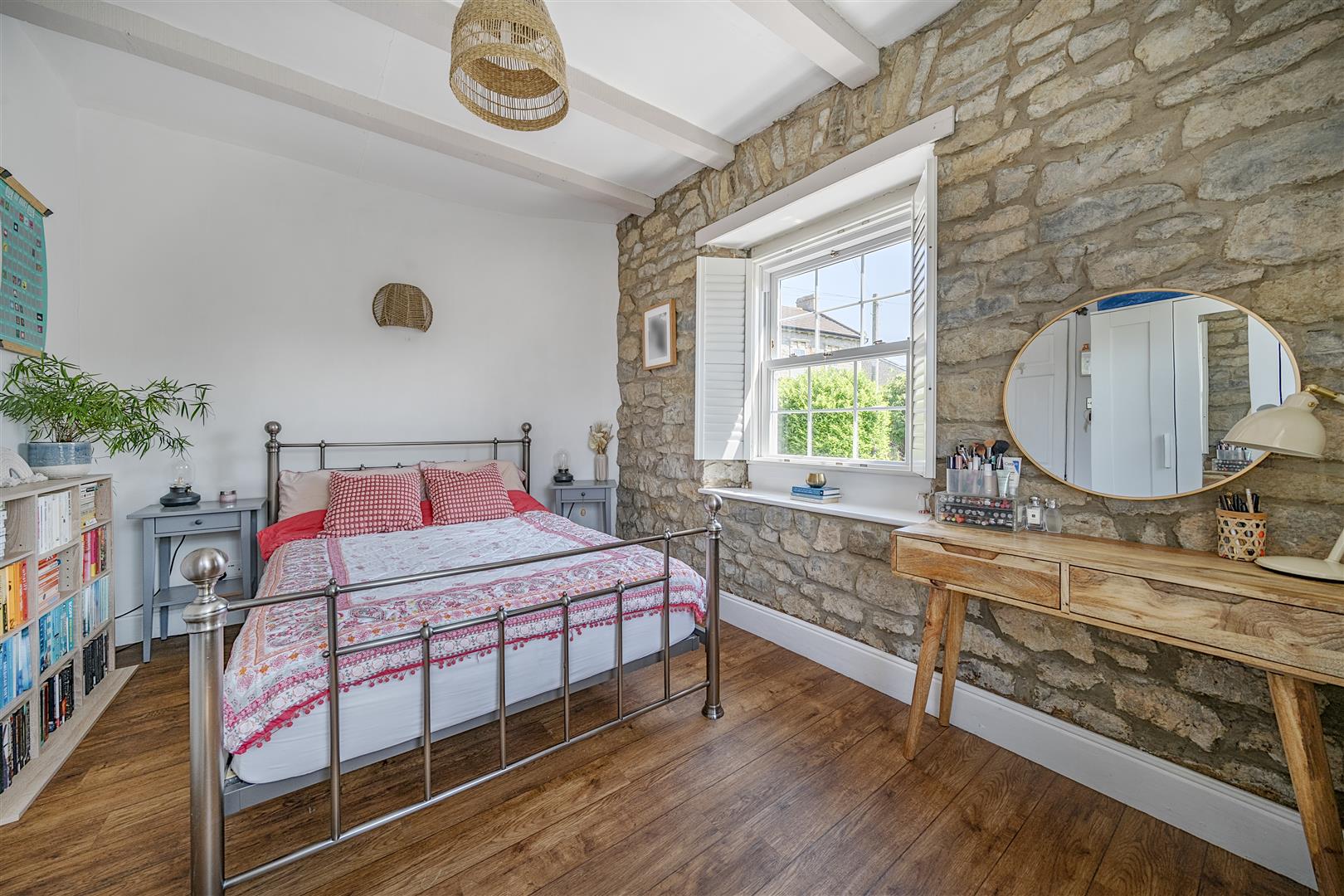 Bedroom One - 4.2m x 2.9m (13'9" x 9'6" ) - Dual aspect UPVC double glazed sash windows with inset shutters to front and side aspects that enjoy town centre views, exposed stone feature wall, radiator, power points.