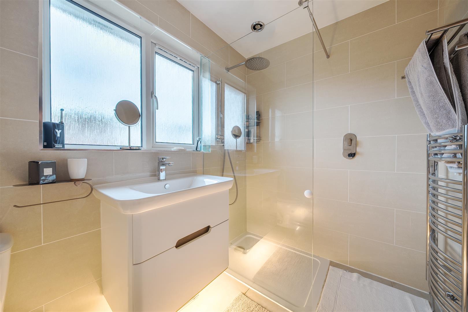 En Suite Shower Room - 2.6m x 1.7m (8'6" x 5'6" ) - Obscured double glazed window to rear aspect, luxury three piece suite comprising oversized wash hand basin with mixer tap over, low level WC and walk in shower cubicle with dual head shower off mains supply over, heated towel rail, underfloor heating, fully tiled to all wet areas.