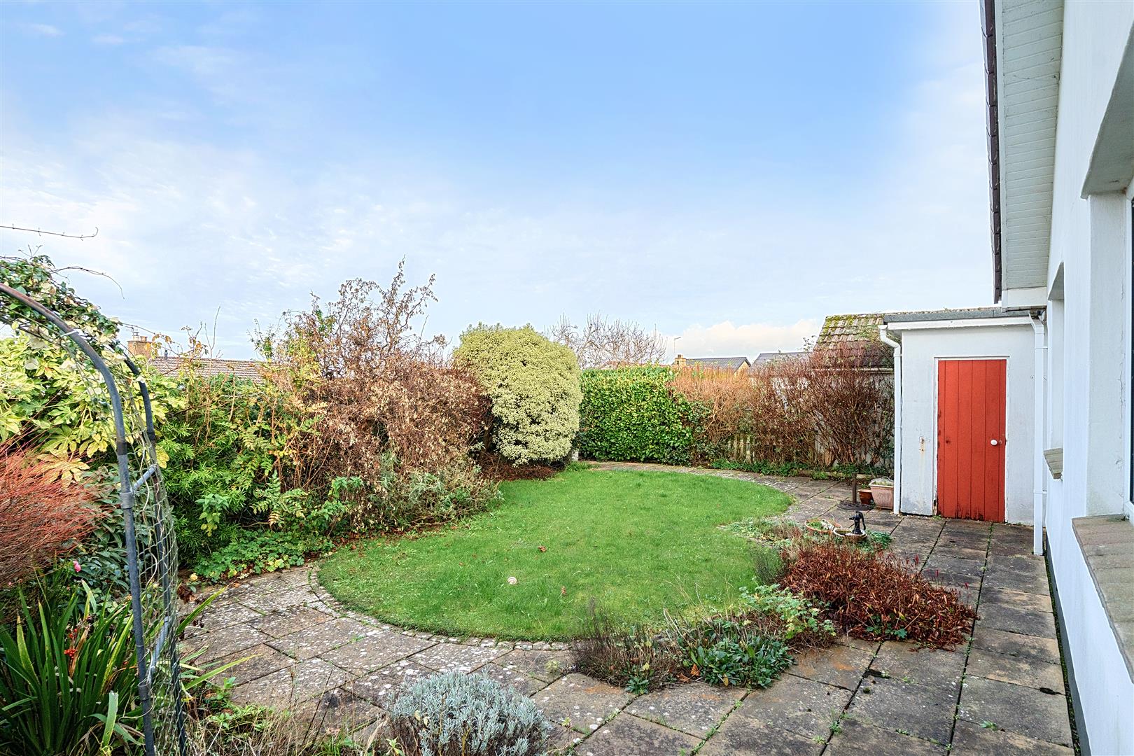 Rear Garden - Private rear garden mainly laid to lawn with wrap around patio, fenced boundaries, well stocked flower beds, block storage shed, feature pond, pedestrian access to garage.
