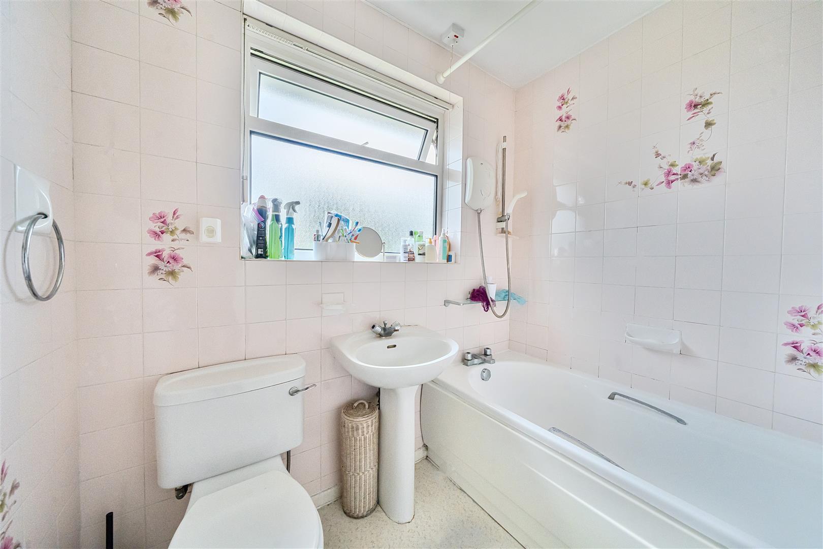 Bathroom - 2.2m x 1.7m (7'2" x 5'6" ) - Obscured double glazed window to front aspect, modern matching three piece suite comprising pedestal wash hand basin with mixer tap over, low level WC, panelled bath with mixer tap and electric shower over, radiator, tiled splashbacks to all wet areas.