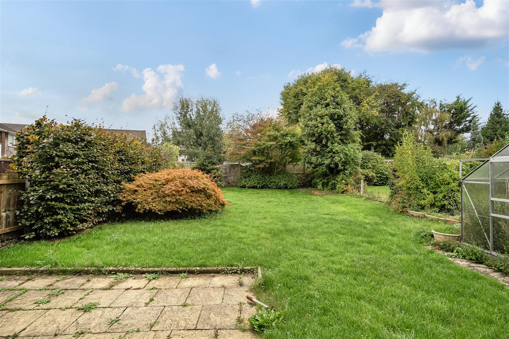 Rear Garden - Spacious low maintenance rear garden mainly laid to lawn with fenced boundaries, well stocked flower beds, patio, timber shed, cupboard lean to clothes drying area, greenhouse.