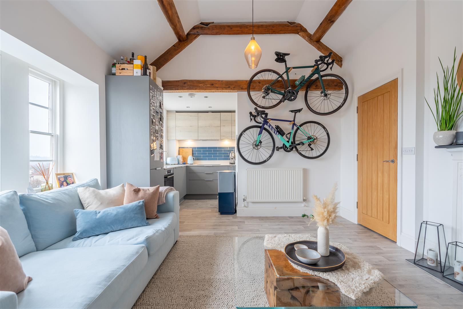 Open Plan Living/Dining Room/Kitchen - 6.6m x 4.1m (21'7" x 13'5" ) - Single glazed sash windows to front aspect boasting fantastic views. Period feature fireplace and wooden beams. High quality wall and base units with quartz work surfaces over and integrated appliances inclusive of fridge freezer, slimline dish washer, bosch oven and electric hob with extractor over. One and a quarter sink with mixer tap over, tiled splashbacks and under cabinet lighting. Radiators and power points.