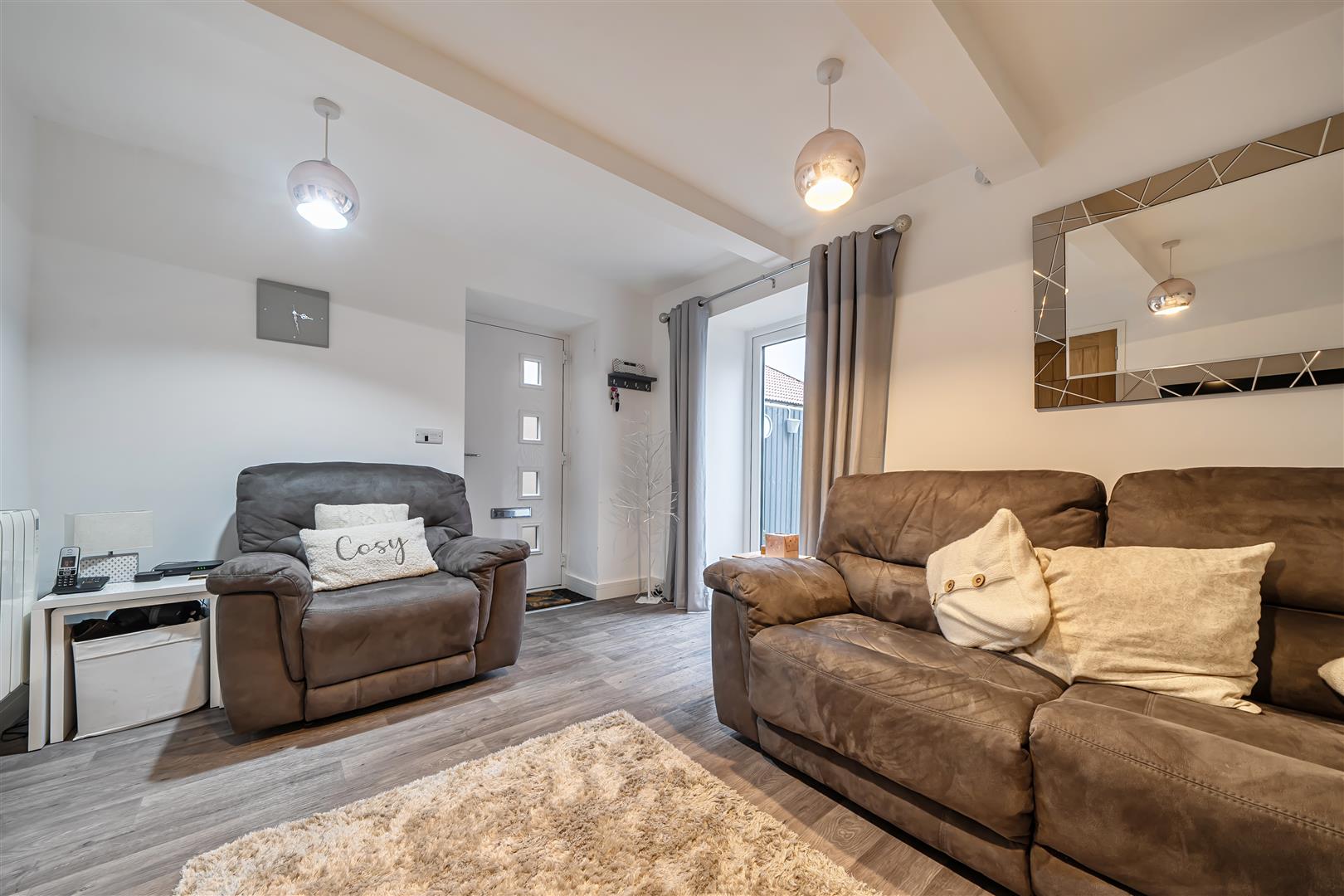The property is entered into a spacious lounge/dining room with direct access to the courtyard garden, creating a light and welcoming living space. This flows through to a modern kitchen fitted with quartz work surfaces and an understairs cupboard providing plumbing for white goods. Upstairs, there is a generous double bedroom complemented by a contemporary shower room and a useful storage cupboard.