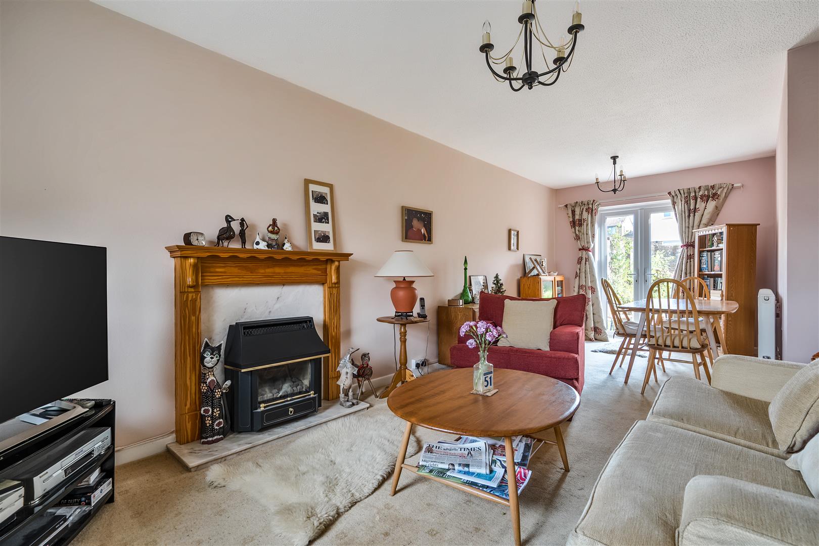 Living/Dining Room - 7.2m x 3.2m (23'7" x 10'5" ) - Double glazed window to front aspect and French doors to rear garden. Gas fireplace with wooden mantle, radiator and power points.