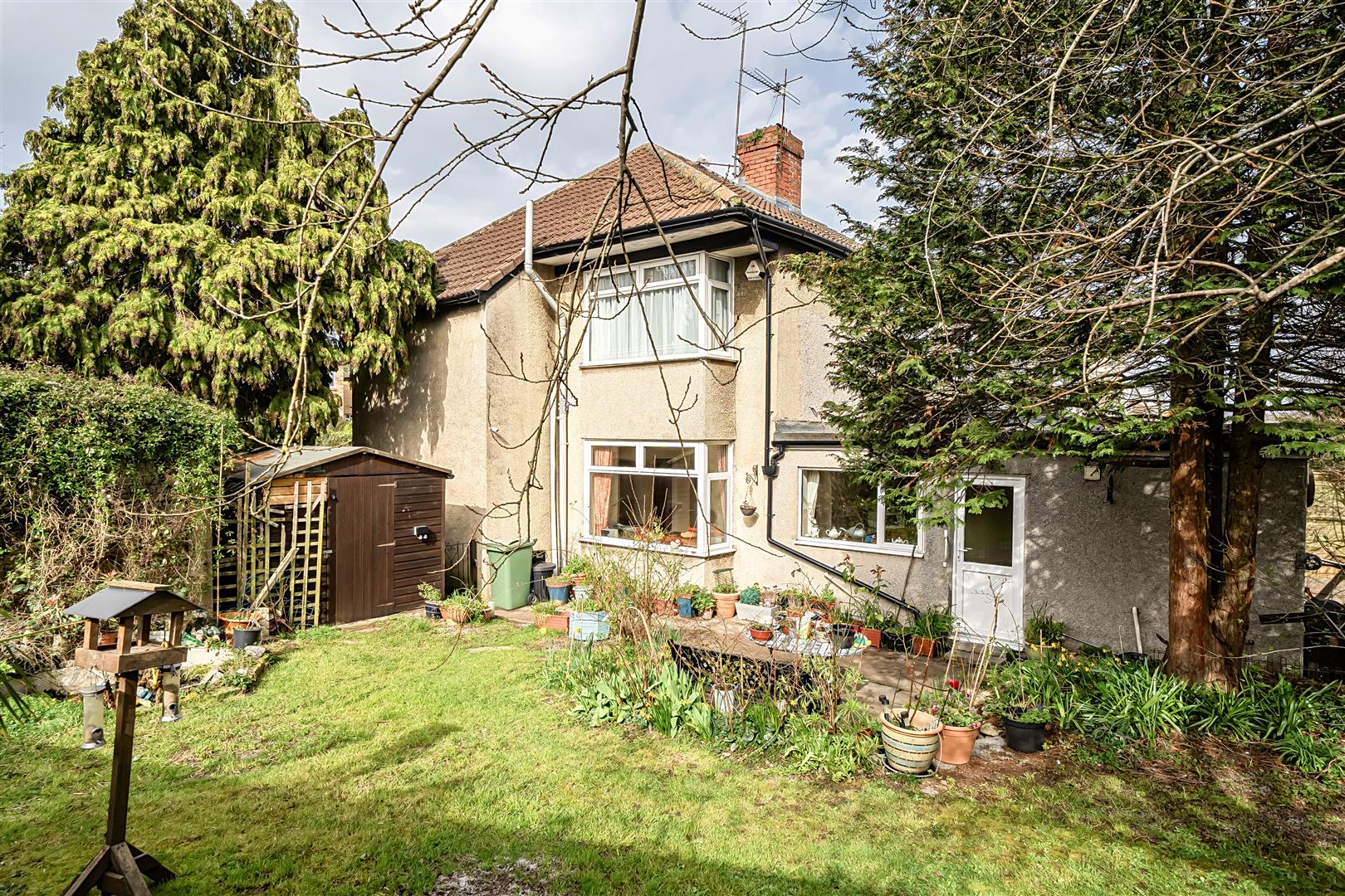 Externally the property occupies larger than typical gardens. To the front there is a generous driveway accessed via a dropped kerb providing parking and turning space for several vehicles. The mature side and rear gardens offer a good sized lawn complemented by established trees, shrubs and well stocked flower beds, along with two patio seating areas, a timber shed, greenhouse and rear lane access.