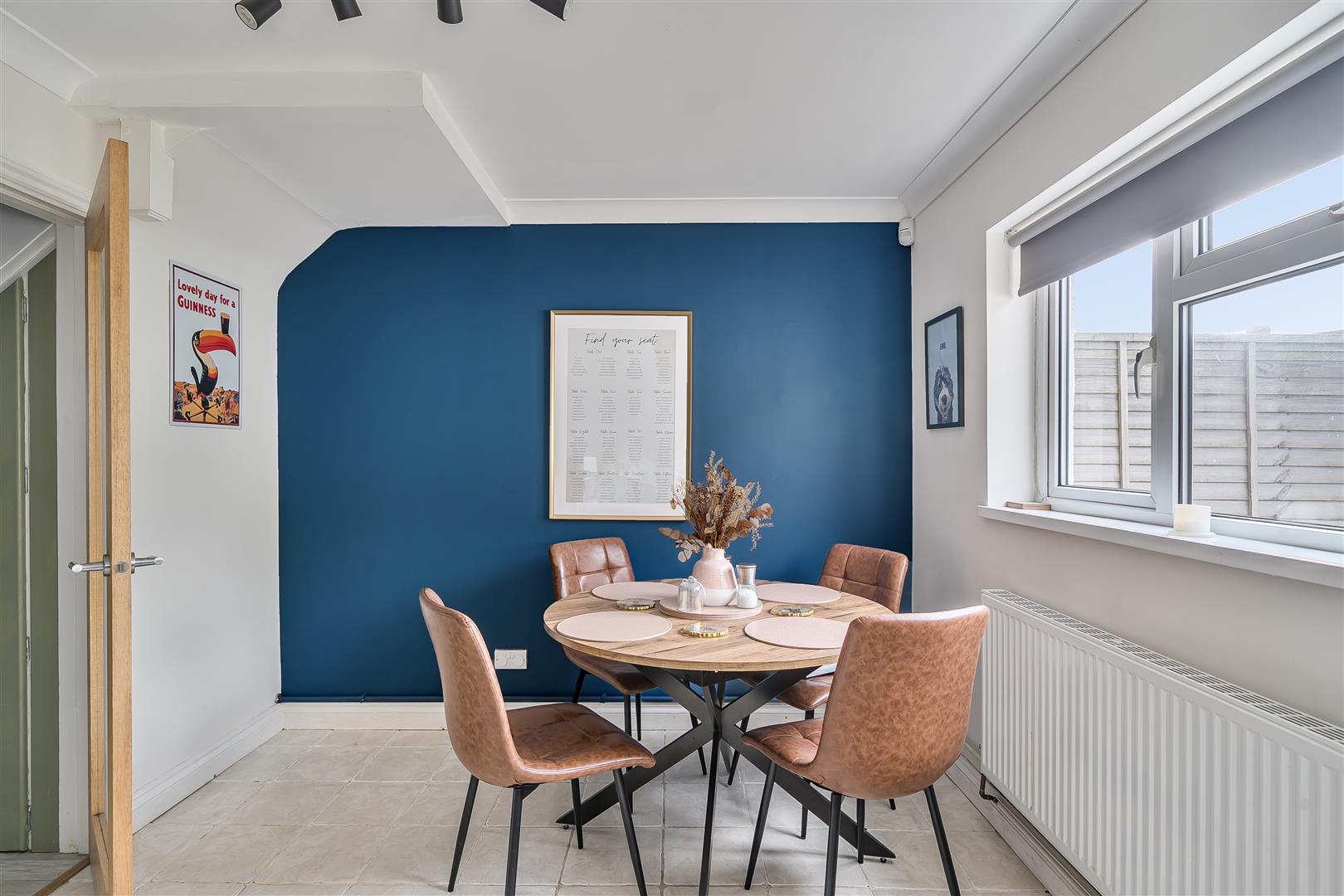 Kitchen/Dining Room - 6m x 3.4m (19'8" x 11'1" ) - Double glazed windows and a door to rear garden. Matching wall and base units with roll top work surfaces over and tiled splashbacks to area, integrated double oven and electric hob with extractor hood over, space and plumbing for dishwasher and fridge/freezer. One and a quarter basin with mixer tap over, wall mounted combination boiler in cupboard and a fitted desk/shelving unit. Tiled flooring, radiator and power points.