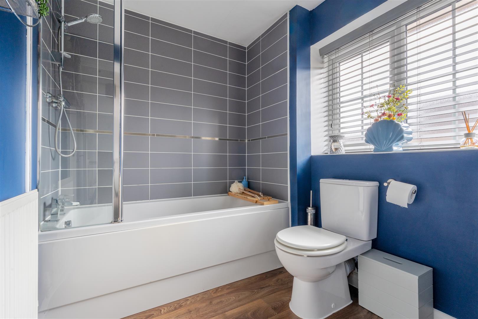 Bathroom - 2.4m narrowing to 1.9m x 2m (7'10" narrowing to 6 - Obscured double glazed window to rear aspect, modern matching three piece suite comprising pedestal wash hand basin with mixer tap over, low level WC, panelled bath with mixer tap and shower off mains supply over, radiator, extractor fan, tiled splashbacks to all wet areas.