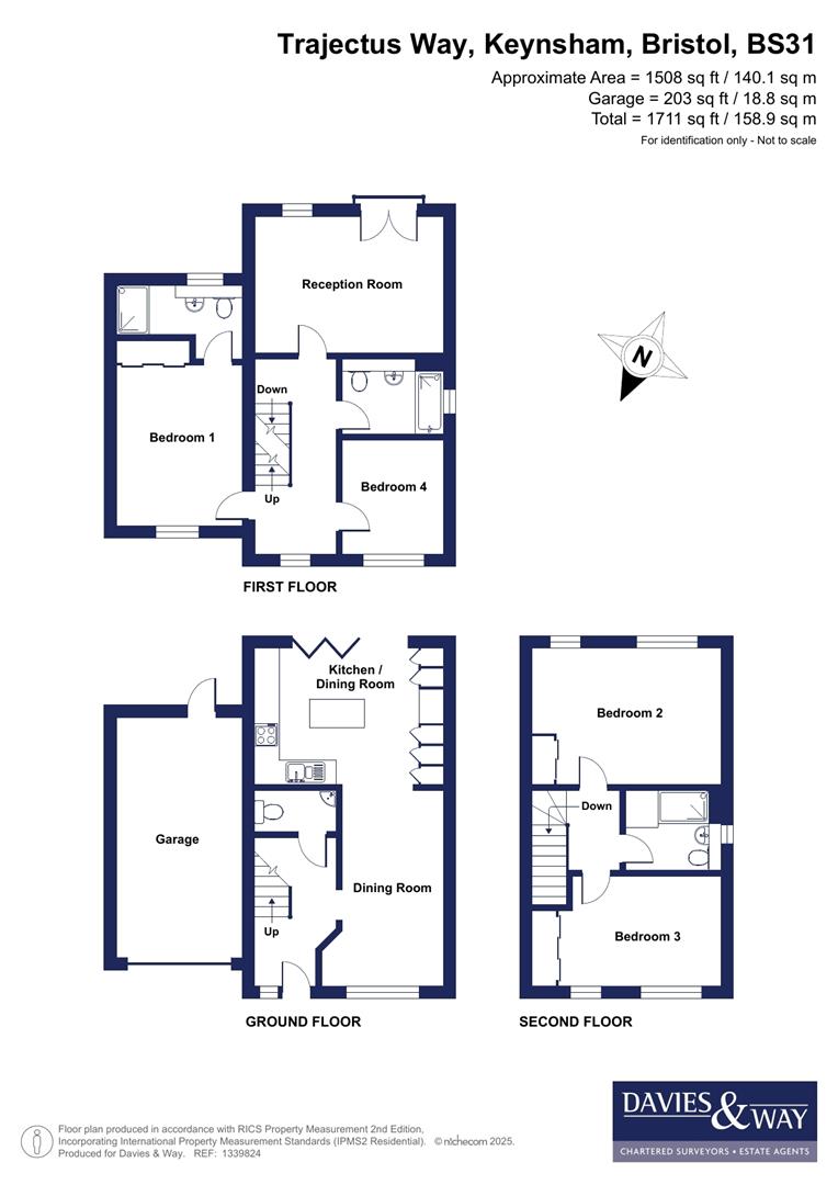 The ground floor is entered through a welcoming entrance hallway leading to a stylish kitchen/diner fully fitted with a range of integrated appliances, a striking central island, marble work surfaces and bi-folding doors opening to the rear garden. A convenient WC completes this level. On the first floor, a spacious landing with a full-height picture window floods the space with light. Here, you'll find an airy reception room with a Juliette balcony overlooking the rear garden, the principal bedroom with a contemporary en suite shower room, a further bedroom currently utilised as an office and the family bathroom. The second floor accommodates two additional double bedrooms with ceiling heights exceeding 3m (9'10") in places. The rear bedroom enjoys panoramic views over the surrounding countryside and Kelston Roundhill. This floor is completed by a modern three piece shower room.