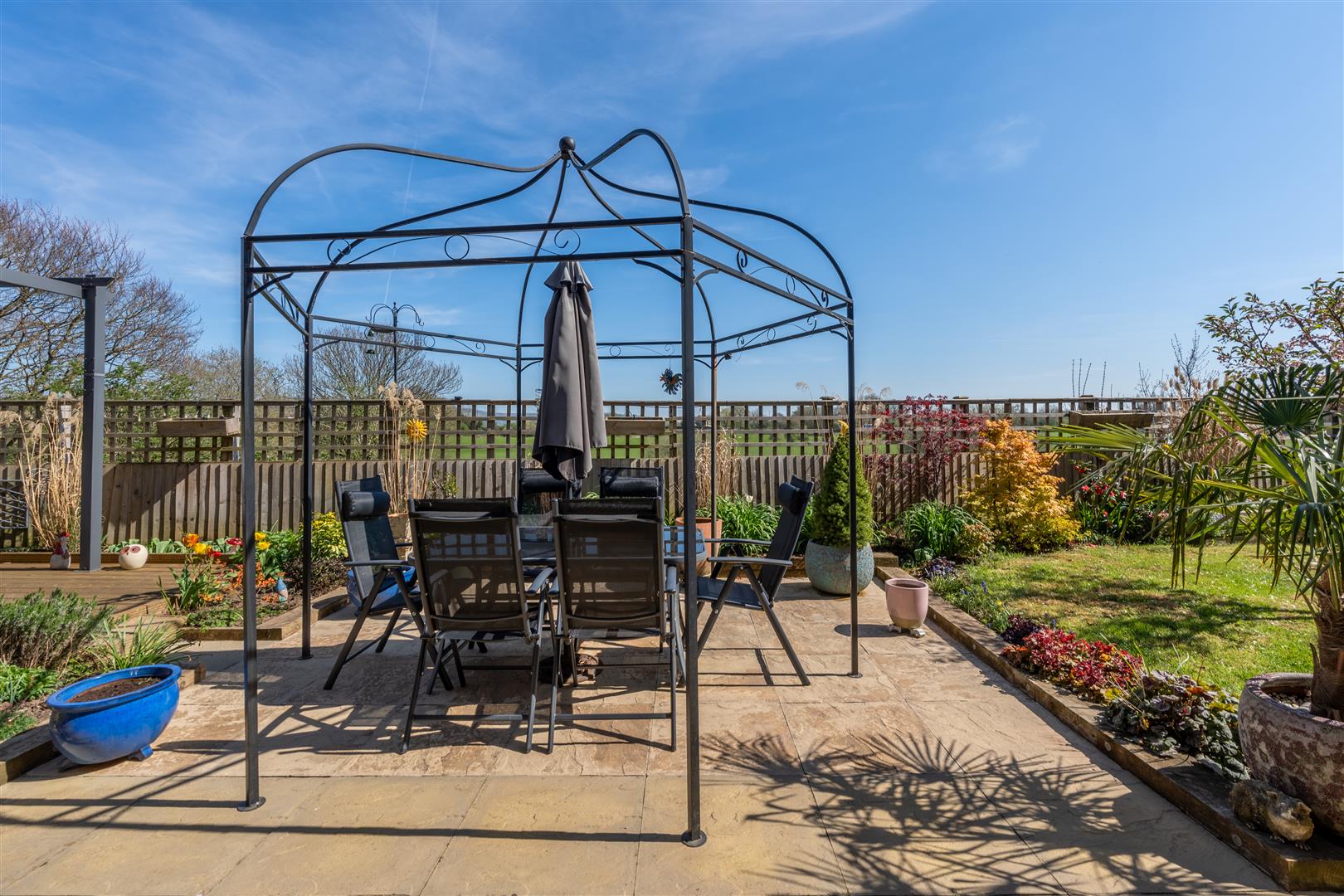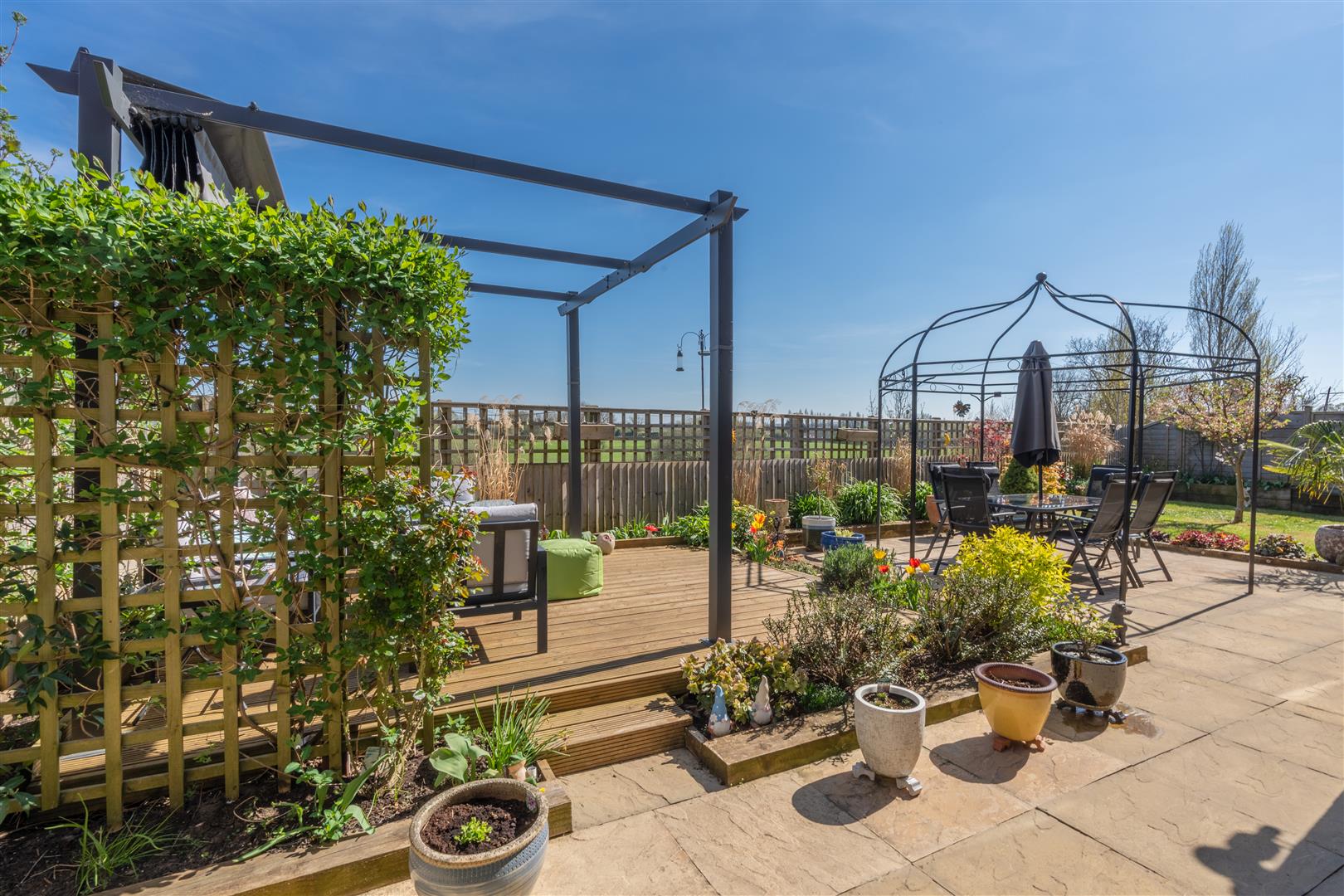 Rear Garden - Directly backing onto and overlooking rolling countryside, mainly laid to lawn with fenced boundaries, generous patio ideal for entertaining, raised deck with pergola over, vegetable plot, well stocked flowerbeds, gated path leading to front of property, door leading to garage.