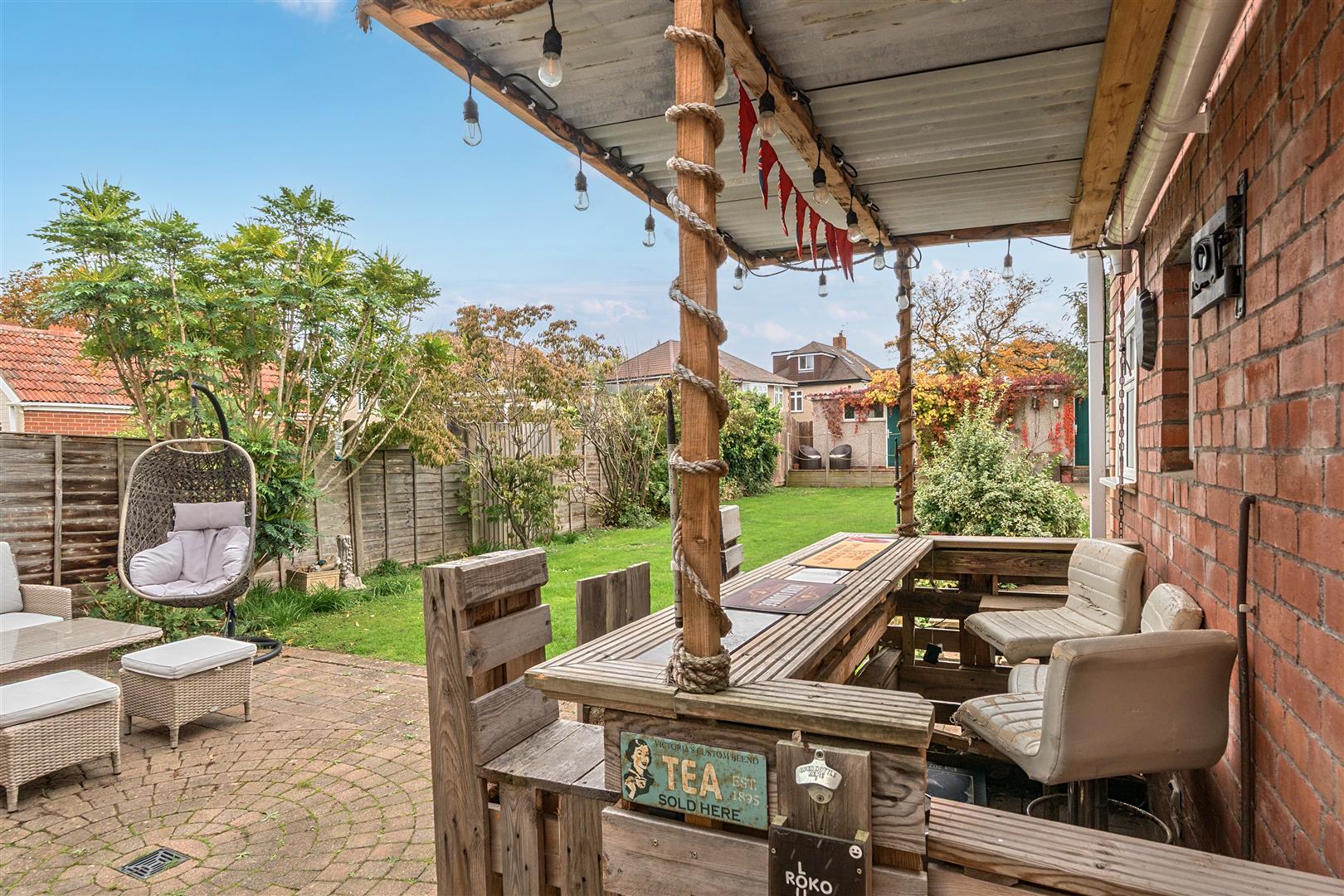 Rear Garden - Mainly level lawn and a laid to block paving area for outdoor dining with a timber built bar, timber fitted BBQ area with wash hand basin. Mainly fenced boundaries with vast array of well established plants and shrubbery.