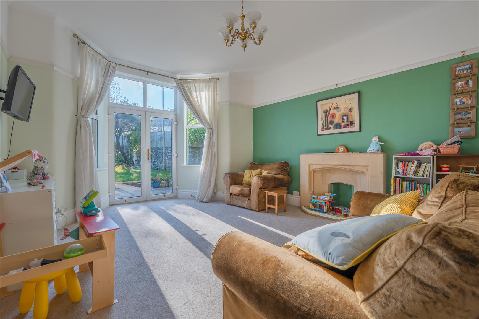 Reception Two - 5.4m x 4.1m into bay (17'8" x 13'5" into bay) - Double glazed windows and French doors providing direct access to rear garden, access through to kitchen, picture rails and a stone mantle which previously housed a gas fire. Radiators and power points.