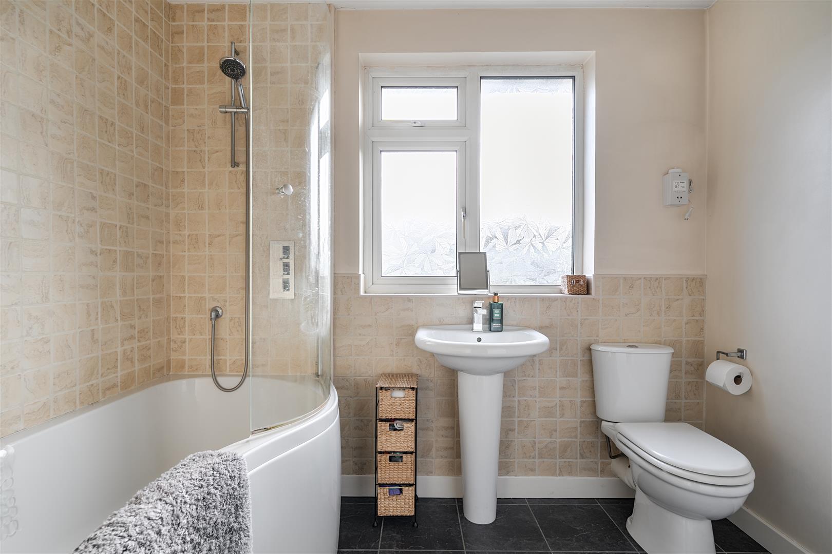 Bathroom - 2.5m x 1.7m (8'2" x 5'6" ) - Double glazed obscured window to rear aspect, pedestal wash hand basin with mixer tap over and a low level WC. Panelled bath with shower off mains over and a glass shower panel. Spotlight lighting, tiled walls to wet areas and tiled flooring. Heated towel rail and shaving power points.