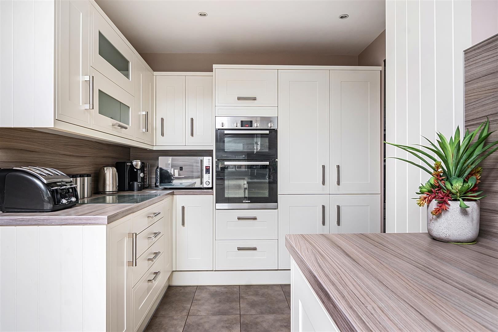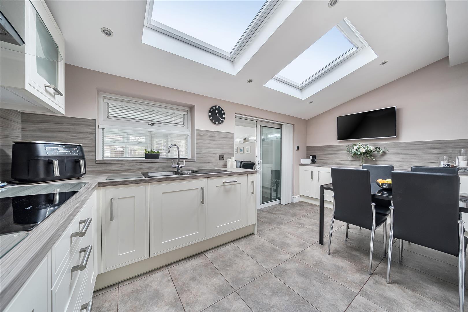 Kitchen - 5.5m x 4.7m (18'0" x 15'5" ) - to maximum points. Dual double glazed velux windows electrically operated by a remote that also operates the electrically operated blinds to roofline, lightwell, double glazed window and patio door to rear aspect to garden room. Bespoke built kitchen comprising range of soft close wall and base units with under counter and plinth lighting, bowl and a quarter sink with mixer tap over, range of integrated appliances including double electric oven, four ring induction hob with glass and stainless steel extractor fan over, integrated dishwasher, space and power for upright fridge and freezer, power points, splashbacks to all wet areas, ample space for family sized dining table, radiator, patio door leading to garden room.