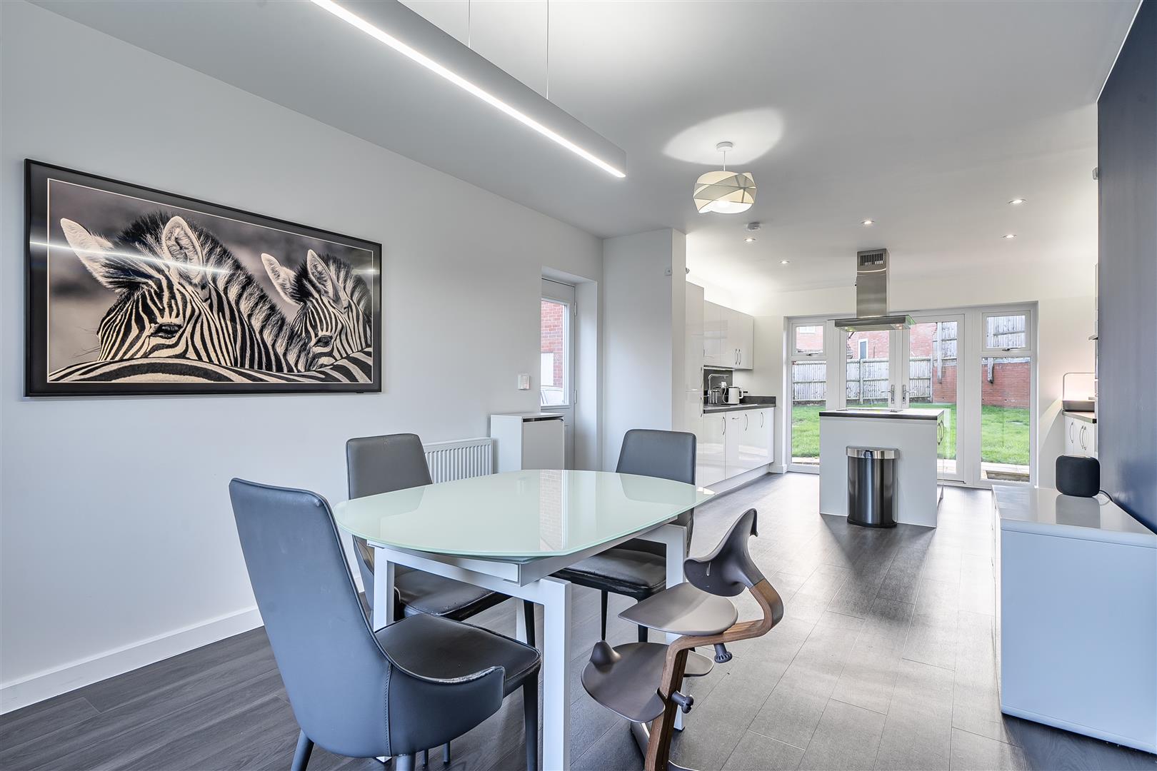 Enjoying an enviable position within a highly sought-after development, this impressive four bedroom detached home directly fronts and overlooks adjoining green space and benefits from a larger than average rear garden. The property is presented to a high modern standard throughout and incorporates a number of enhancements ideal for those seeking an eco-friendly, smart home.