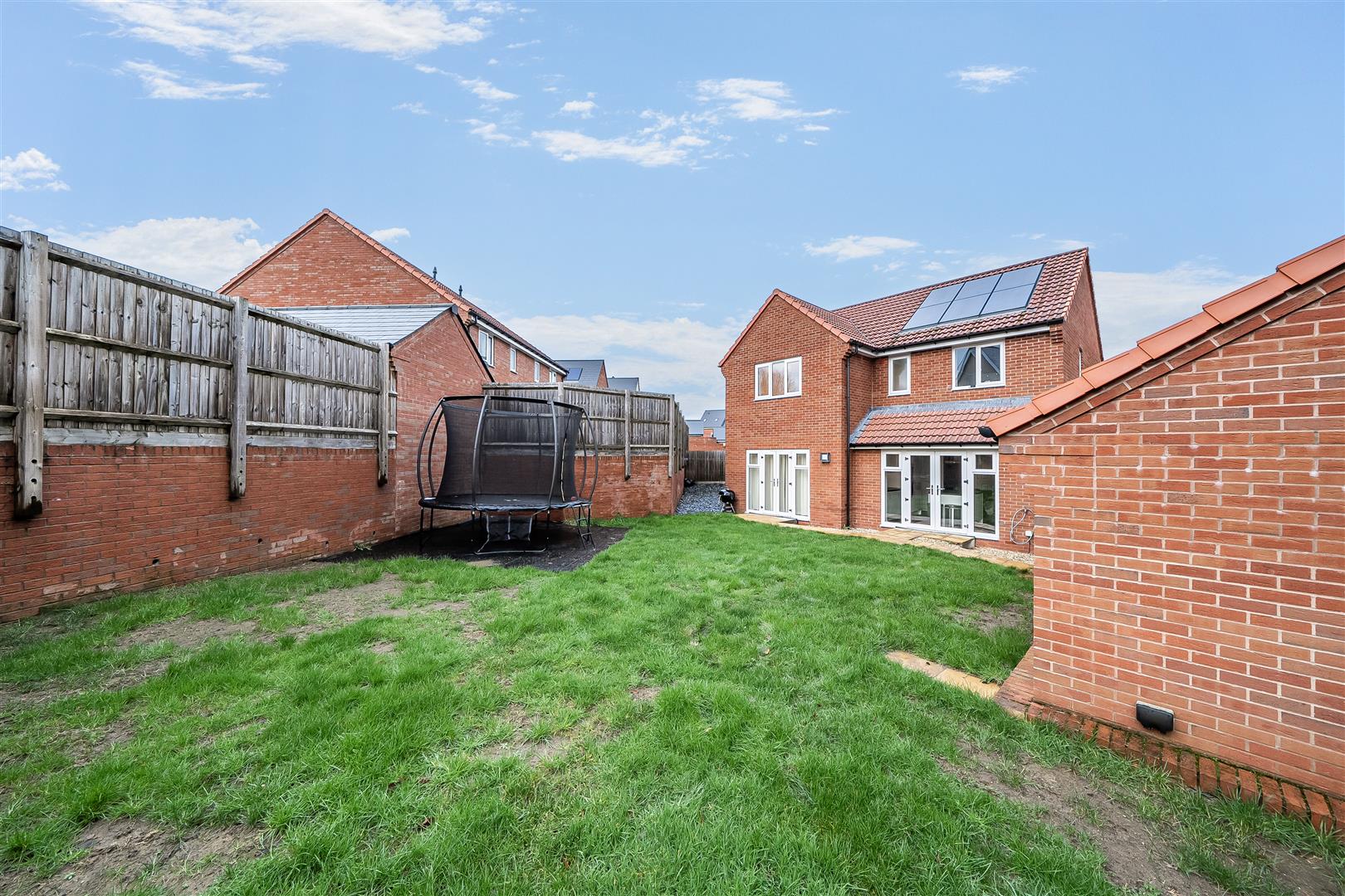 Internally, the ground floor is approached via a welcoming entrance hallway leading to a generous lounge with French doors opening onto the rear garden. The standout feature is the impressive full depth open-plan kitchen/dining/family room, measuring 8.6m (28'2") in length, which boasts a high-quality fitted kitchen with integrated Bosch appliances, a central island and ample space for both family dining and seating. The ground floor further benefits from a study enjoying green views, a useful utility cupboard and a separate WC. To the first floor are four well-proportioned bedrooms, all enjoying views over the rear garden or surrounding green space. The principal bedroom is served by a luxury en suite shower room, while the remaining bedrooms are complemented by a high-quality four piece family bathroom.