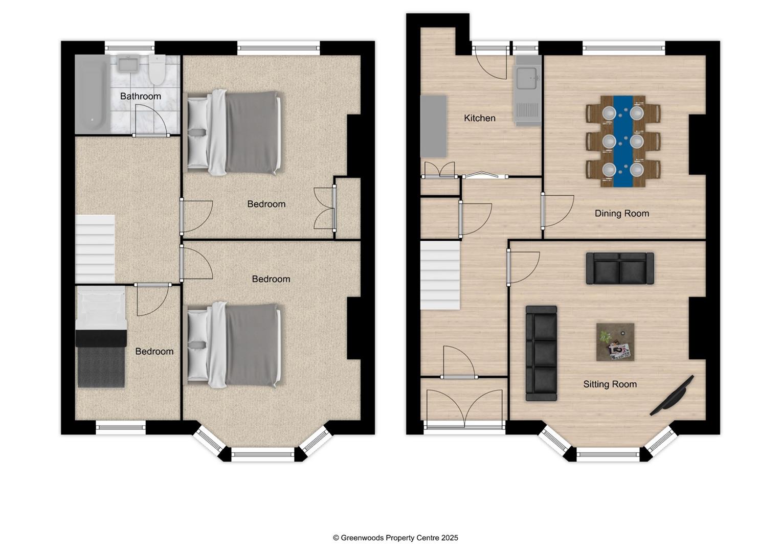 Requiring full refurbishment throughout, the home currently offers three well-proportioned bedrooms, a family bathroom, a separate sitting room and dining room, and a kitchen. With scope to extend and reconfigure (subject to necessary consents), there is potential to transform this property into a spacious four-bedroom family home.