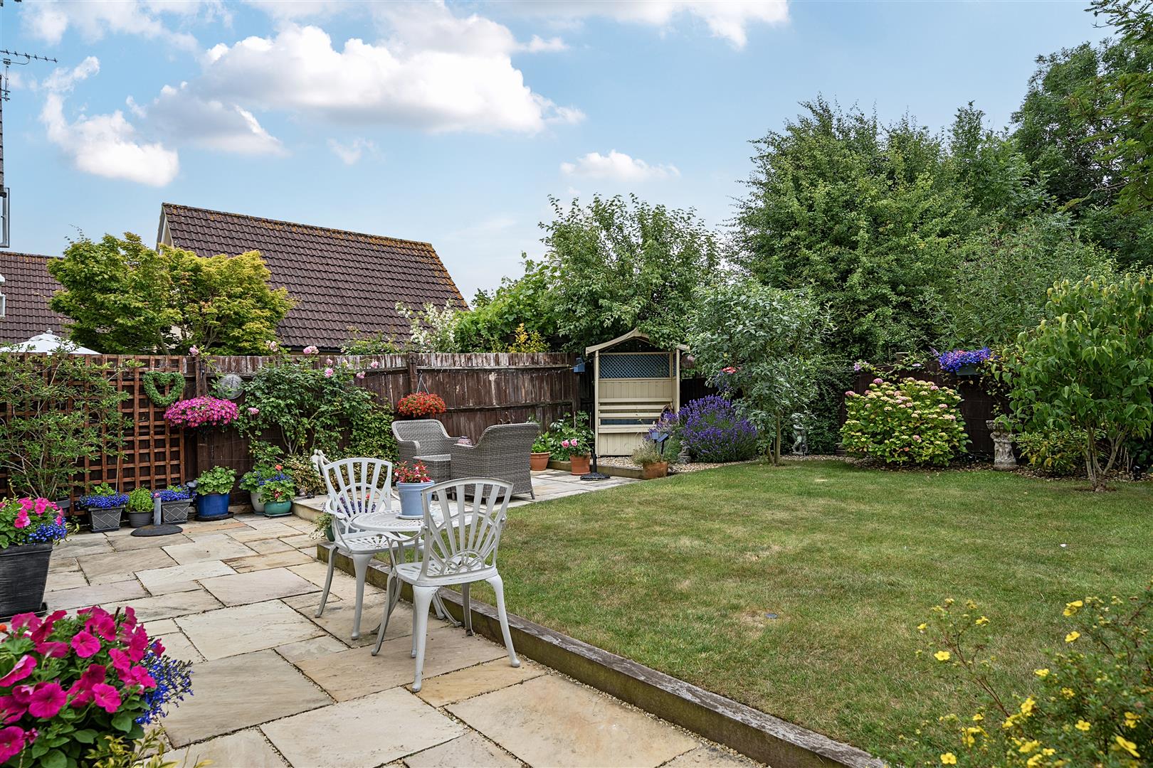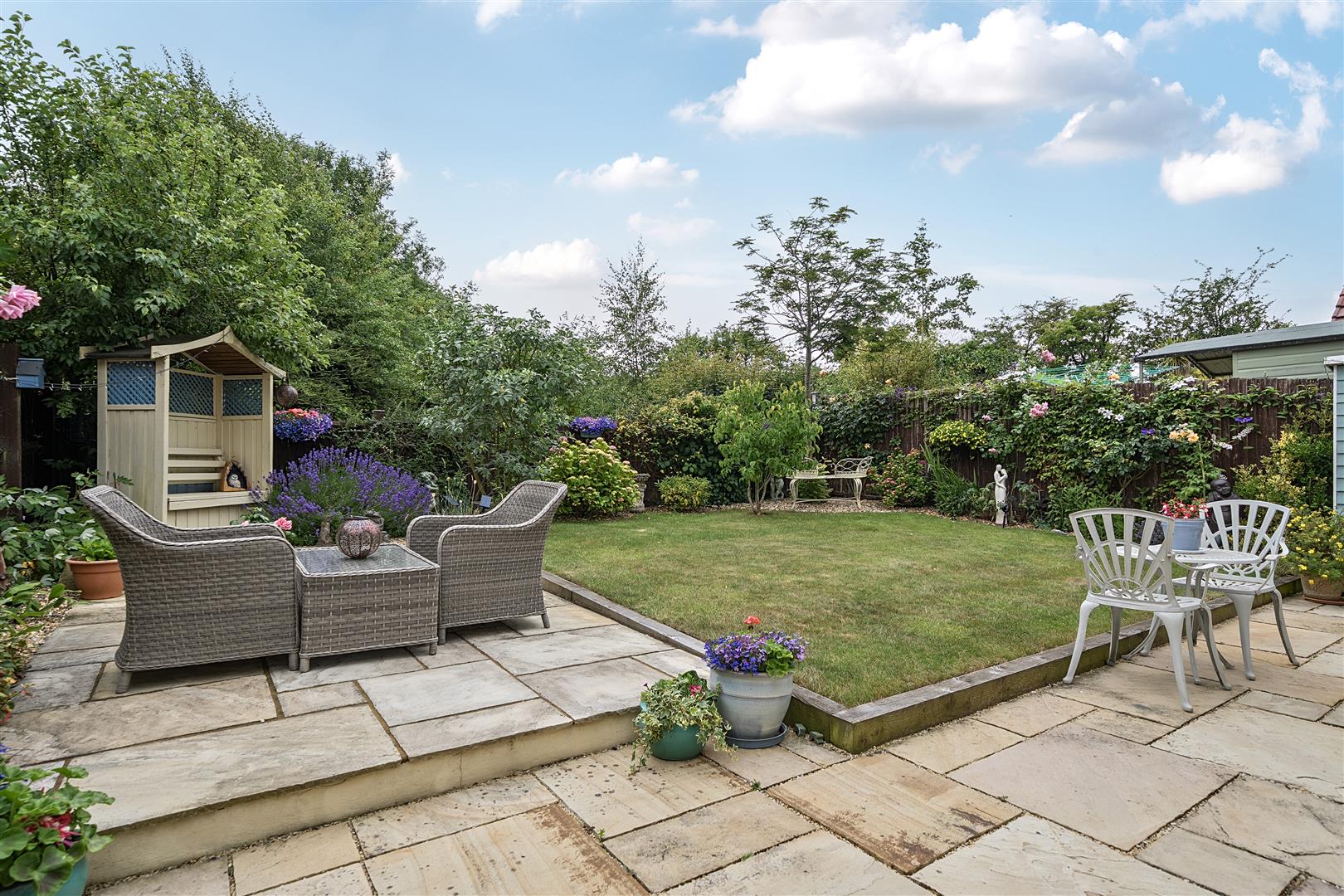 Rear Garden - Beautifully landscaped rear garden mainly laid to lawn with fenced boundaries, generous wrap around patio ideal for entertaining and al fresco dining, pretty well stocked flower beds with several small trees, stone chipping seating areas, external power, gate leading to adjoining meadow, pedestrian access to garage.