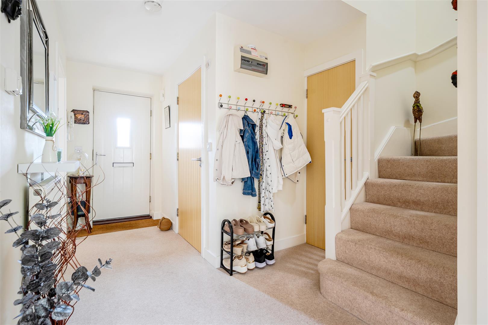 Entrance Hallway - 4.6m x 2.5m narrowing to 1.3m (15'1" x 8'2" narro - Two build in storage cupboards (one housing hot water cylinder), radiator, power points, stairs rising to first floor landing, doors leading to rooms.