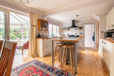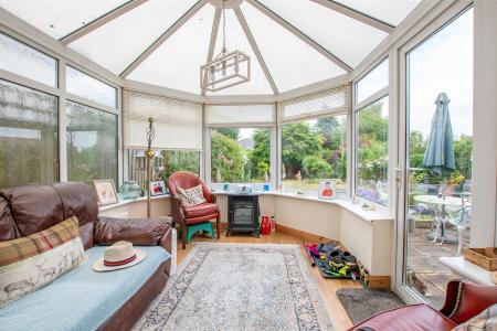 You approach into a double glazed porch that in turn leads you into the living room. The solid oak flooring is the first indication of quality, then the ornate fireplace with a log burner, the open feel due to the hallway wall being removed and ample light from the large window. French doors lead into the kitchen/dining room, with the central island, dining space and a very well appointed kitchen. Doors lead off in one way to the conservatory overlooking the rear garden. The other to the rear lobby, giving access to both the front and rear. Alongside is a utility room, cloak room and integral garage.