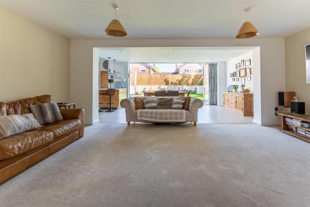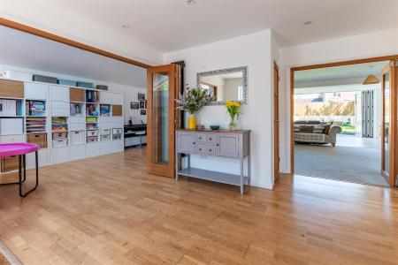 Sitting Room - 5.78 3.78 (18'11" 12'4") - Folding glass panel doors lead into the room from the the entrance hallway. Store cupboard. television connection points. Large opening to the kitchen / diner / family room.