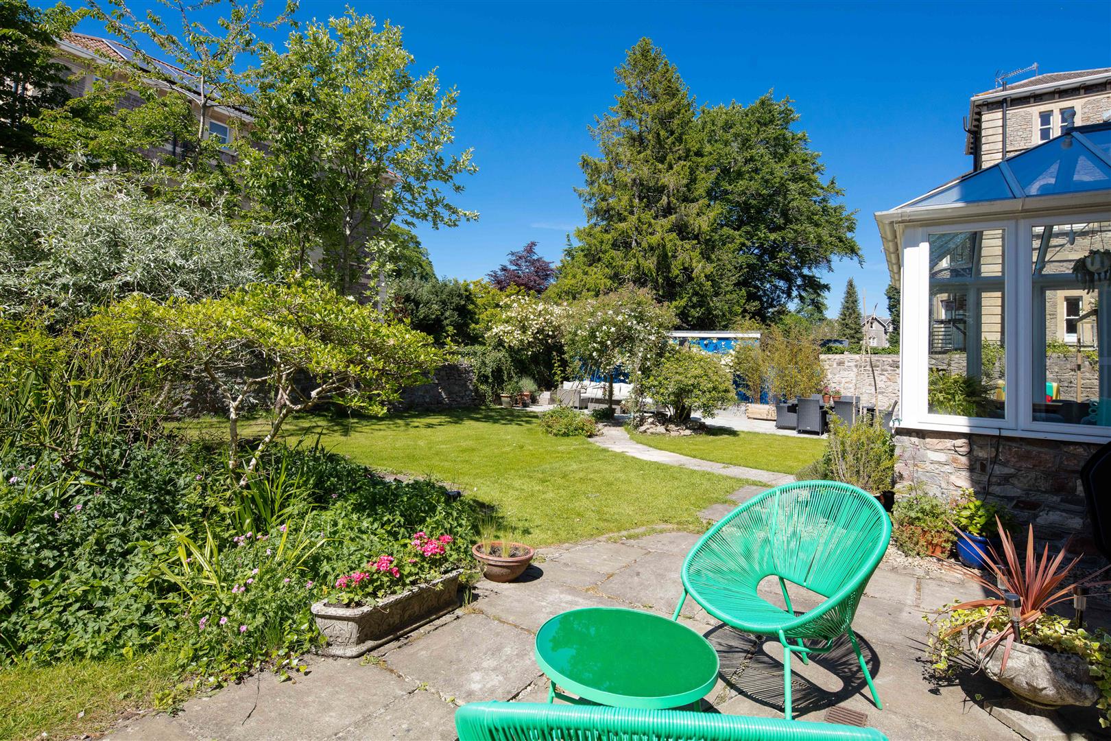 - Stunning and particularly large (75' by 35') sunny, private garden