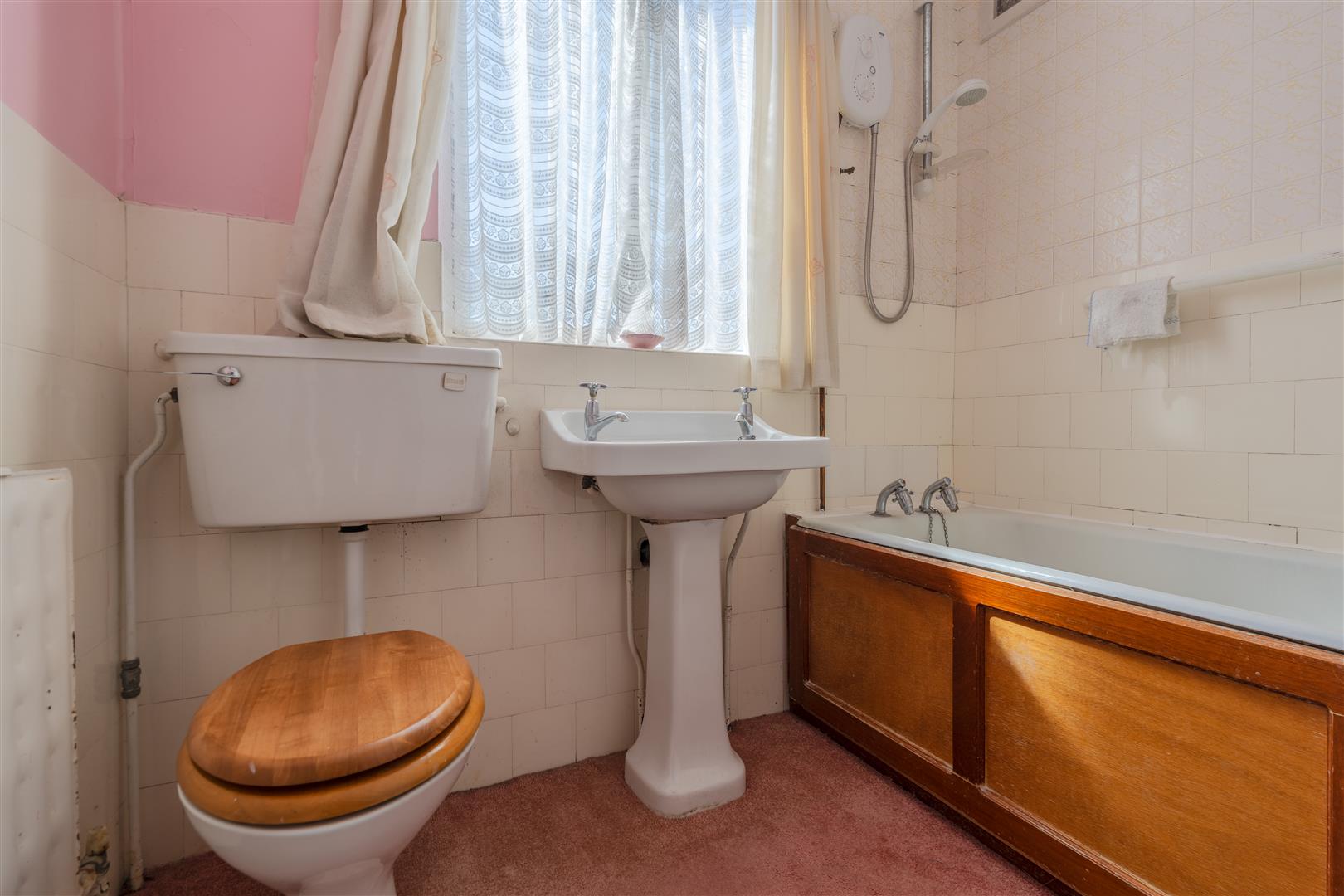 Bathroom - 2.2m x 1.8m (7'2" x 5'10" ) - Obscured double glazed window to rear aspect, matching three piece suite comprising pedestal wash hand basin, low level WC and panelled bath with electric shower over, radiator, tiled splashbacks to all wet areas.