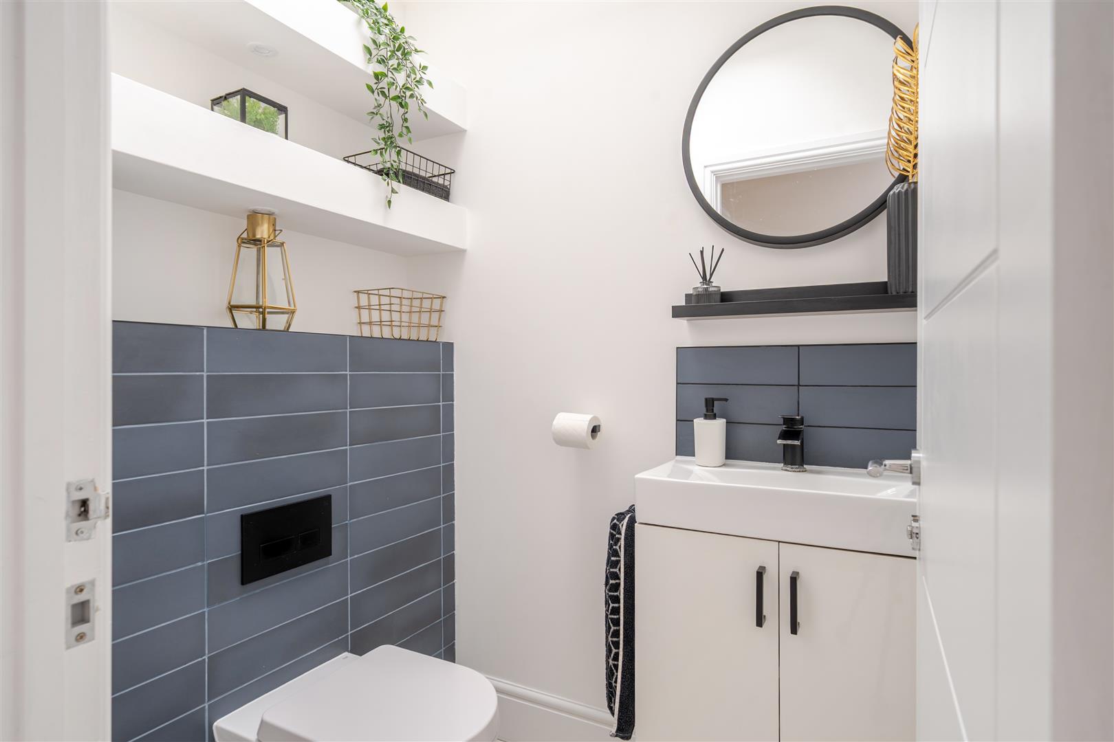 Wc - 1.5m x 1.2m (4'11" x 3'11" ) - Electric velux windows, wash hand basin unit with storage cupboard below and mixer tap over, WC with hidden cistern and fitted shelving with low lights. Extractor fan, tiled splashbacks to wet areas and fully tiled flooring and underfloor heating.