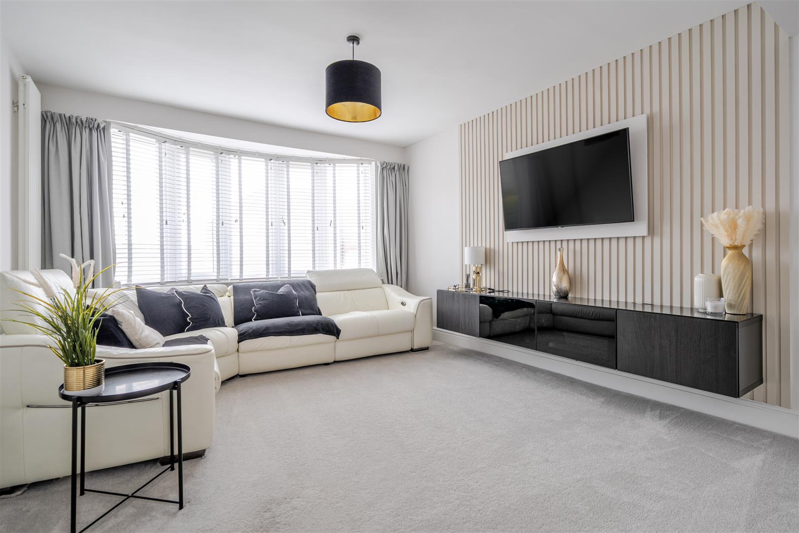 Reception Room - 4.6m x 3.6m (15'1" x 11'9" ) - Double glazed bay window to front aspect, floating tv bench and a fitted storage cupboard with shelving and low lights above. Wall panelling, radiator and power points.