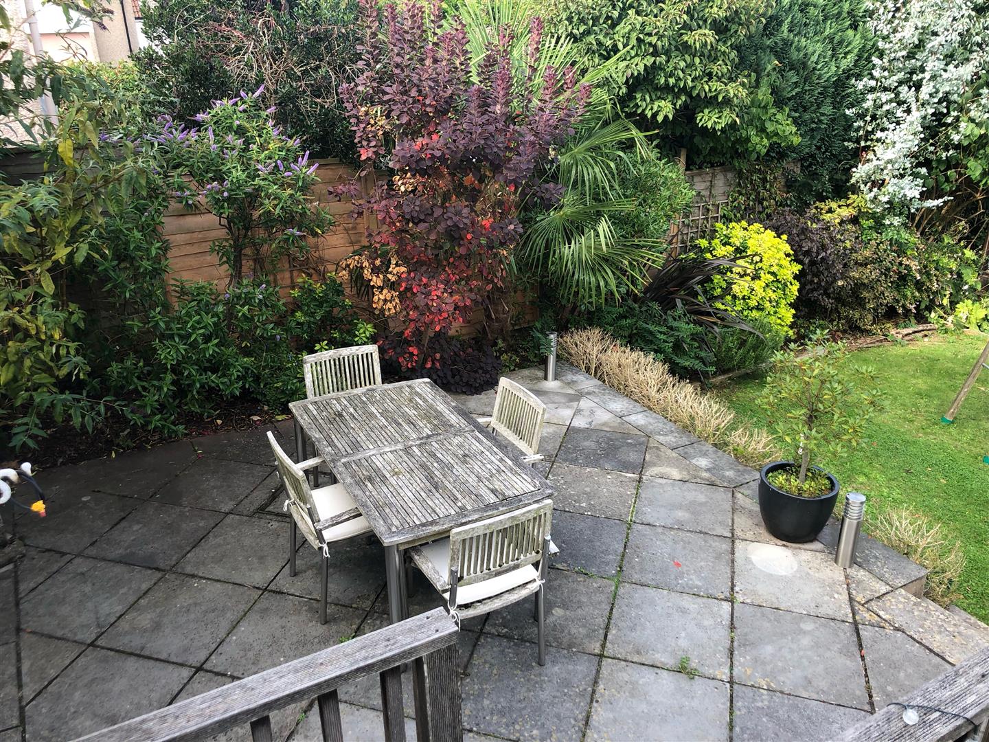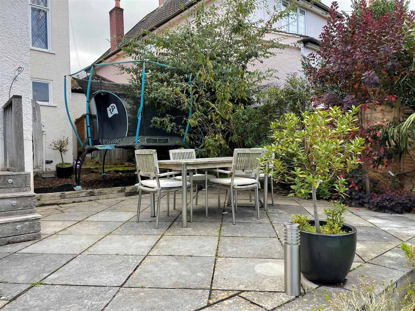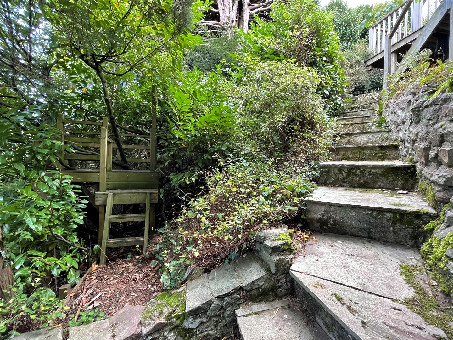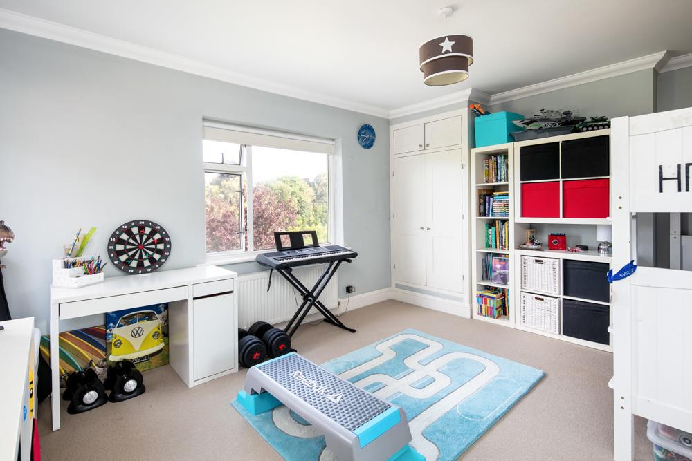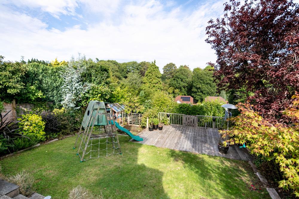 The garden is very large and boasts a lovely level lawn with a further decking area and boarders containing mature trees and shrubs, as well as a vegetable patch. There is a level secluded area which is ideal for a trampoline, as well as a large patio area. The garden then drops down to a large, sloped area with steps and a pathway affording access to terraces and a treehouse, forming a wonderful adventurous play area for children to enjoy