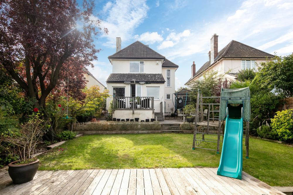 A beautiful family home occupying an elevated position in one of Bristol's most desirable locations. The generous accommodation is bright and light, and enjoys far reaching views to the rear, as well as a delightful garden. The property consists of 3 double bedrooms, open plan Kitchen/Living and a large Sitting room, off street parking, and a garage.