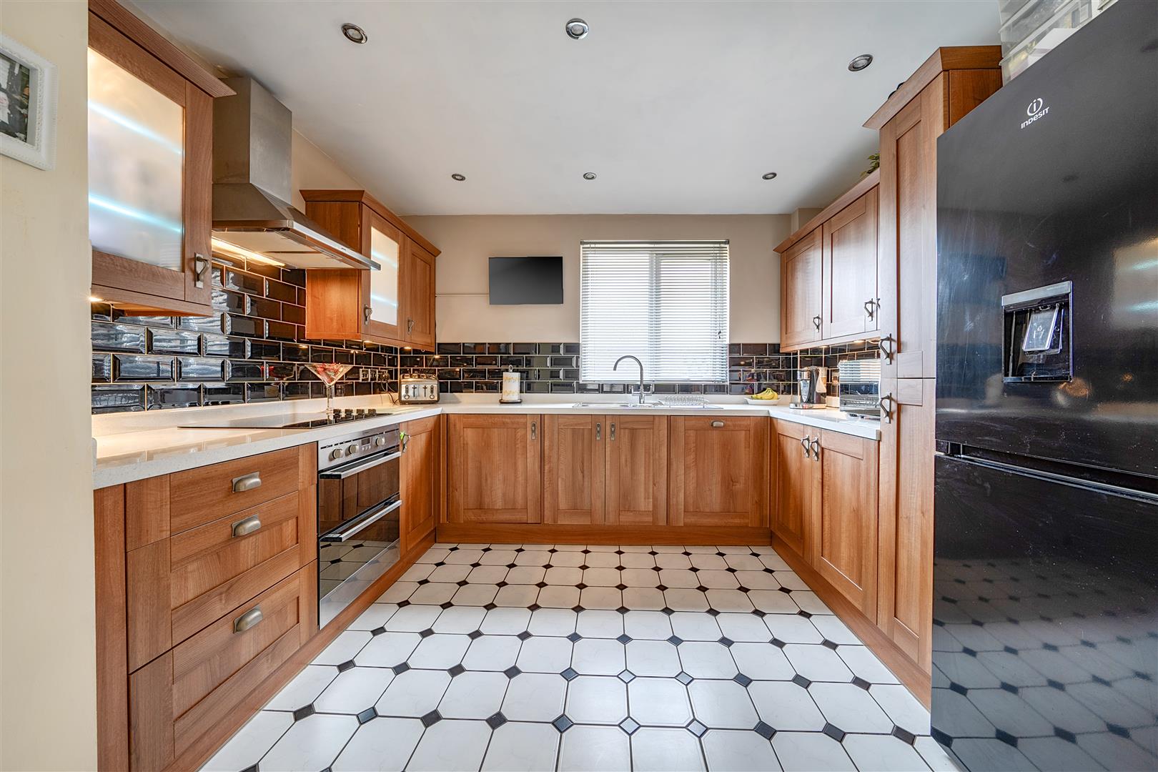 Kitchen/Breakfast Room - 4.3m x 3.3m (14'1" x 10'9" ) - to maximum points. Double glazed window to side aspect, double glazed French doors to rear aspect overlooking and providing access to rear garden. Range of matching wall and base units with roll top work surfaces, undercounter lighting, bowl and a quarter stainless steel sink with mixer tap over, range of integrated appliances including double electric oven, four ring electric hob with stainless steel extractor fan over, integrated dishwasher and washing machine and space and power for upright fridge/freezer. Power points, radiator, tiled splashbacks to all wet areas, door leading to internal store room.