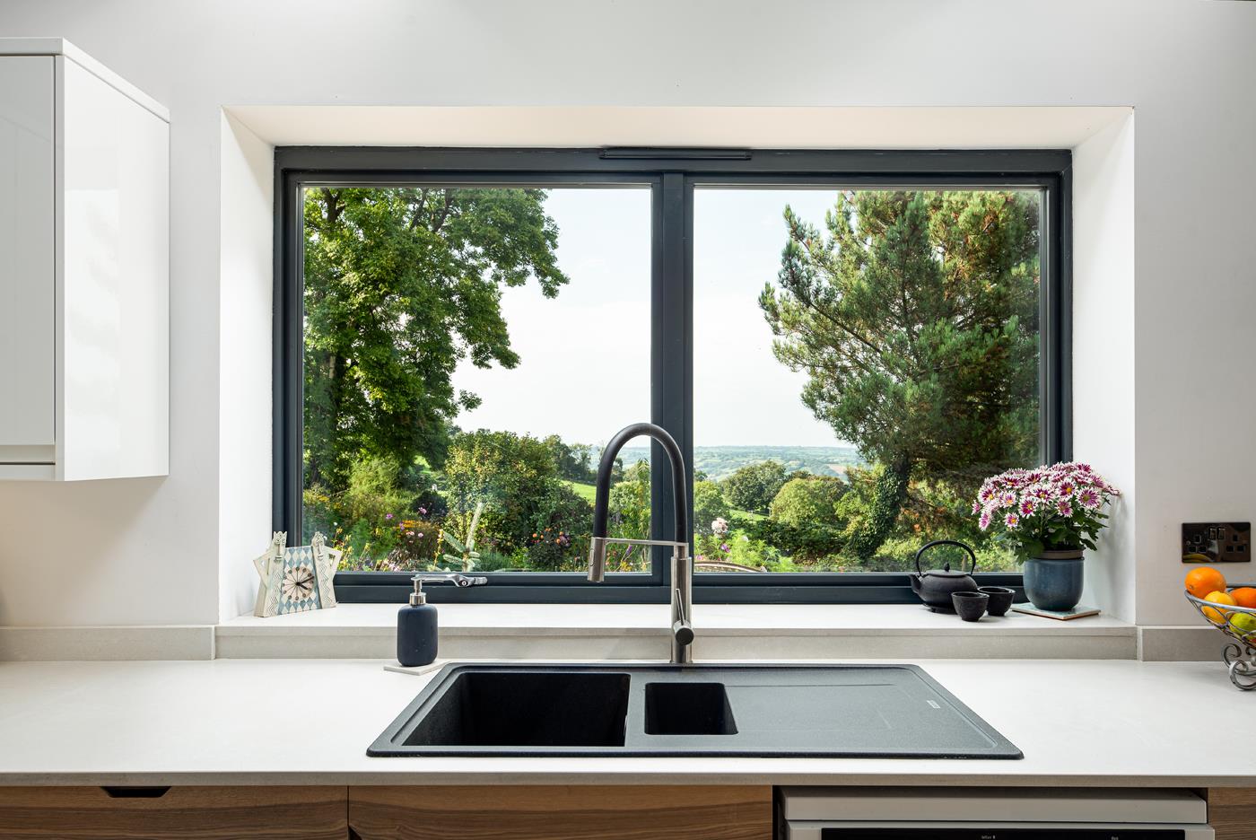 - Open-plan kitchen/dining with bespoke ash units, quartz worktops, and central island