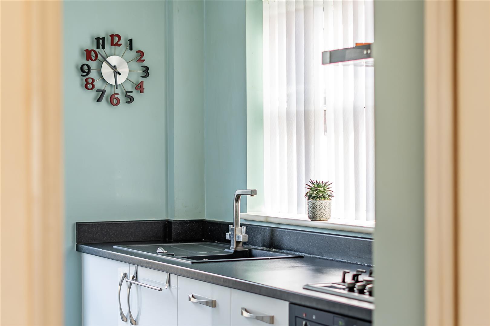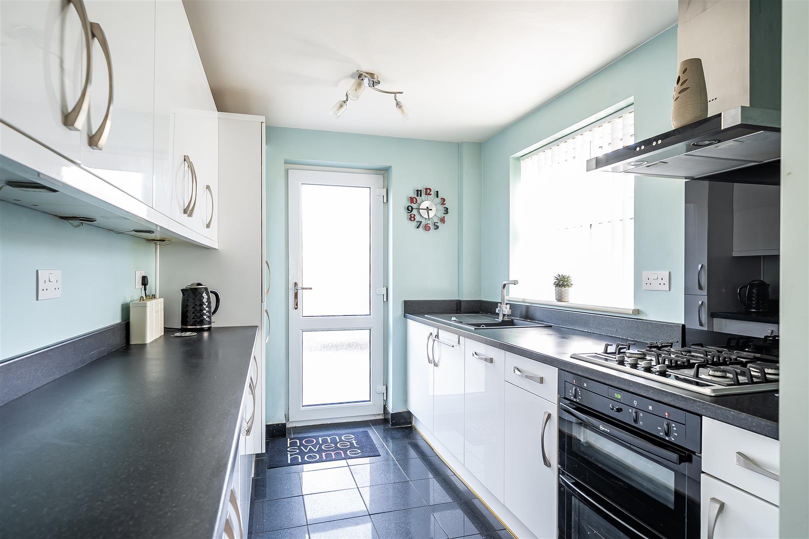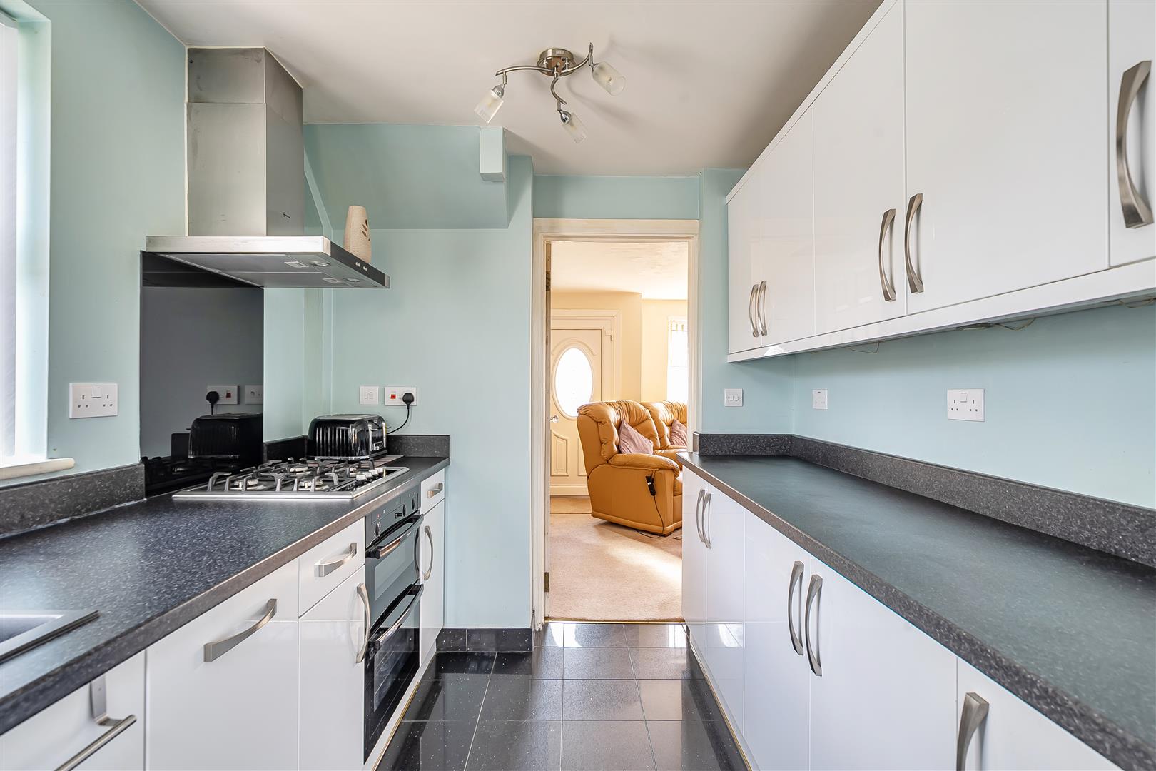 Kitchen - 3m x 2.2m (9'10" x 7'2" ) - Double glazed window to side aspect and obscured door providing direct access to rear garden. Matching high gloss wall and base units with work surfaces over and integrated appliances including fridge/freezer, slimline dishwasher, Neff double oven and gas hob with extractor hood over. Basin and drainer with mixer tap over, tiled flooring and power points.