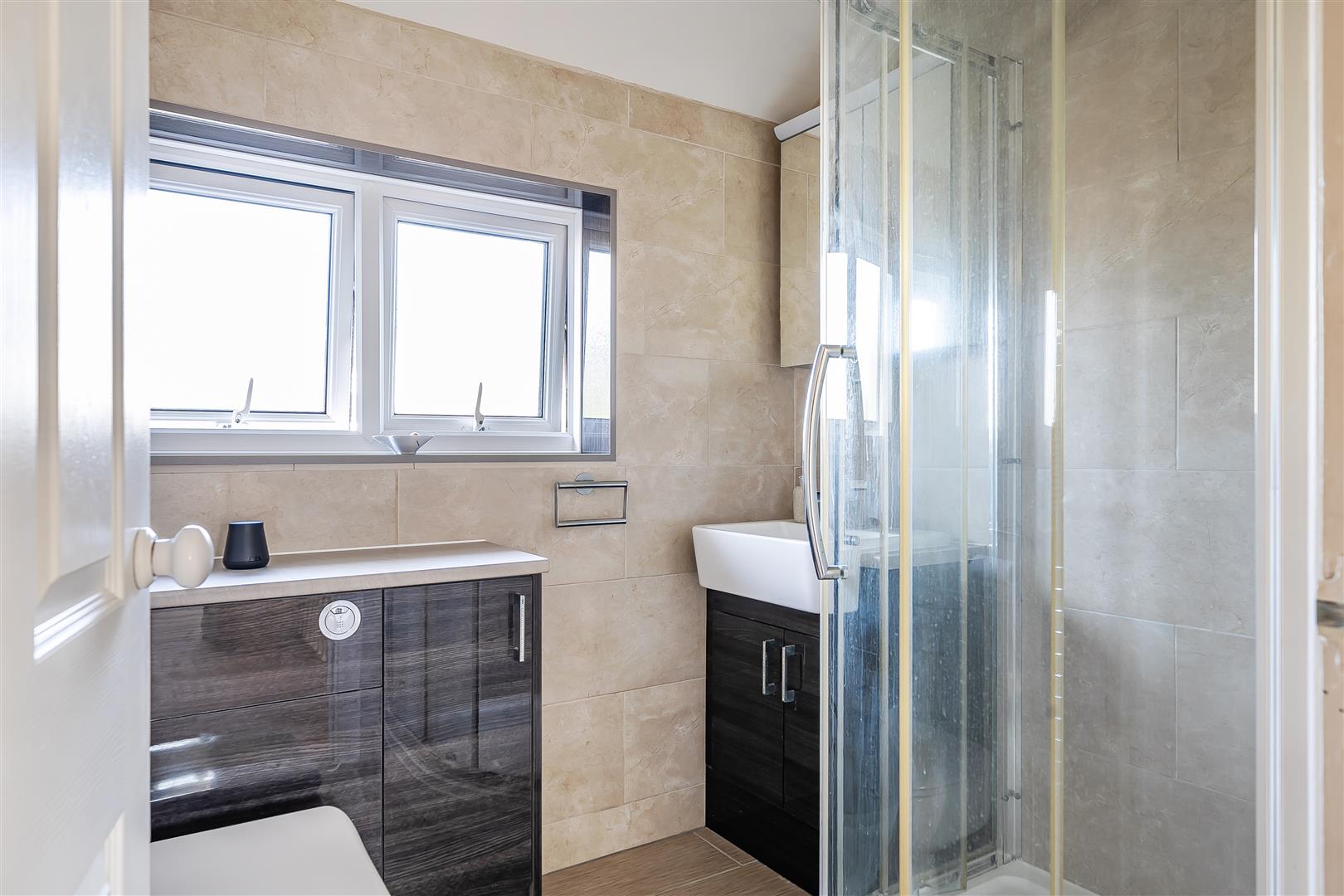 Bathroom - 1.9m x 1.7m (6'2" x 5'6" ) - Double glazed obscured window to rear aspect, walk in corner shower cubicle off mains, vanity unit with inset wash hand basin with waterfall tap over, low level WC with hidden cistern. Tiled walls and flooring, heated towel rail.