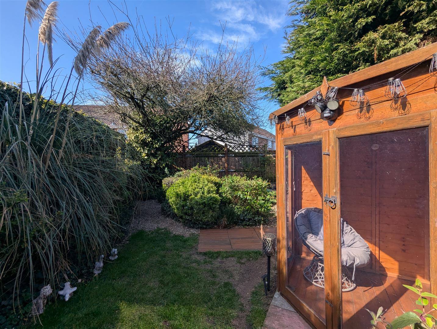 Outside, the property boasts both a front and rear garden. The rear garden provides a private and sunlit outdoor space, enhanced by a pond with a waterfall, adding a peaceful and tranquil retreat. The front garden enhances the home's kerb appeal, while a summer house in the rear garden offers a place to relax to the sound of birds in your own private sanctuary, there is also a decking area to enjoy summer barbeques.