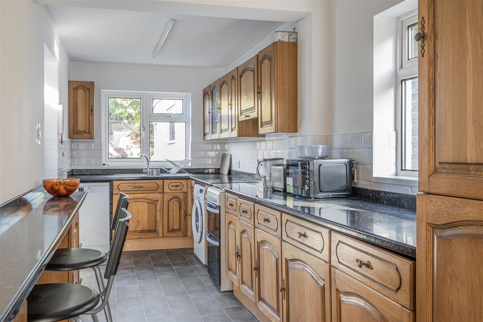 Kitchen - 6.2m x 2.2m (20'4" x 7'2" ) - Dual aspect double glazed windows to rear and side aspects and an obscured double glazed door to side aspect leading to rear garden. Double galley style kitchen comprising range of matching wall and base units with roll top work surfaces, bowl and a quarter stainless steel sink with mixer tap over, integrated fridge, integrated freezer, space and gas supply for oven with extractor fan over, space and plumbing for washing machine and slimline dishwasher, space for tumble dryer, breakfast bar, splashbacks to all wet areas and power points.