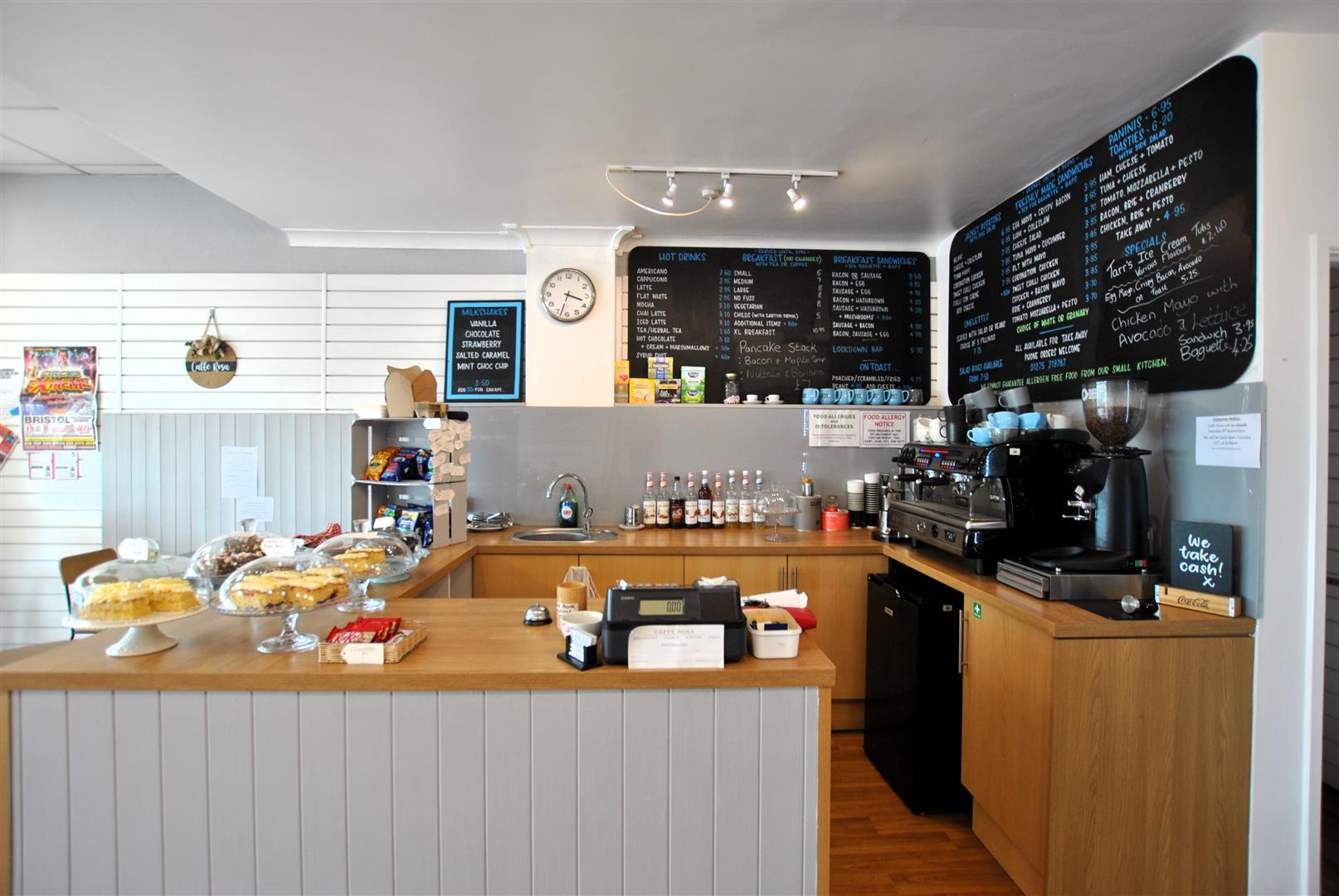 Seating for 25 inside and 6 outside the front of the Cafe.