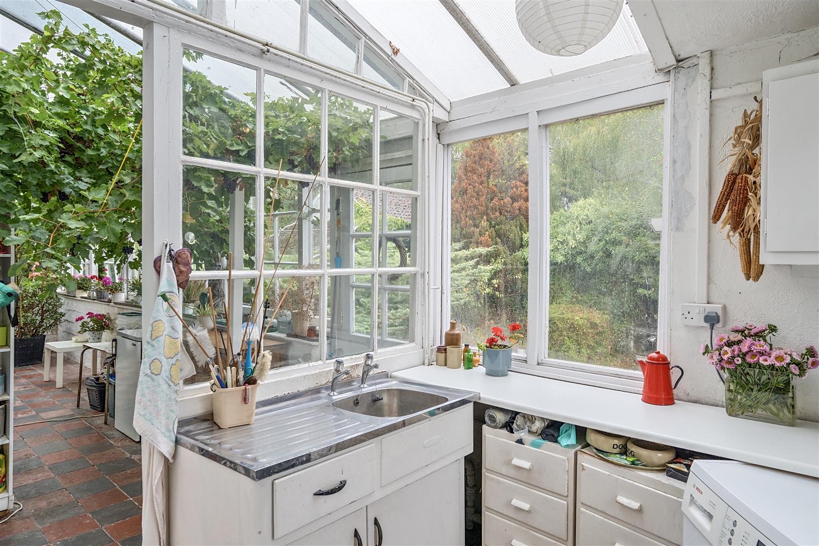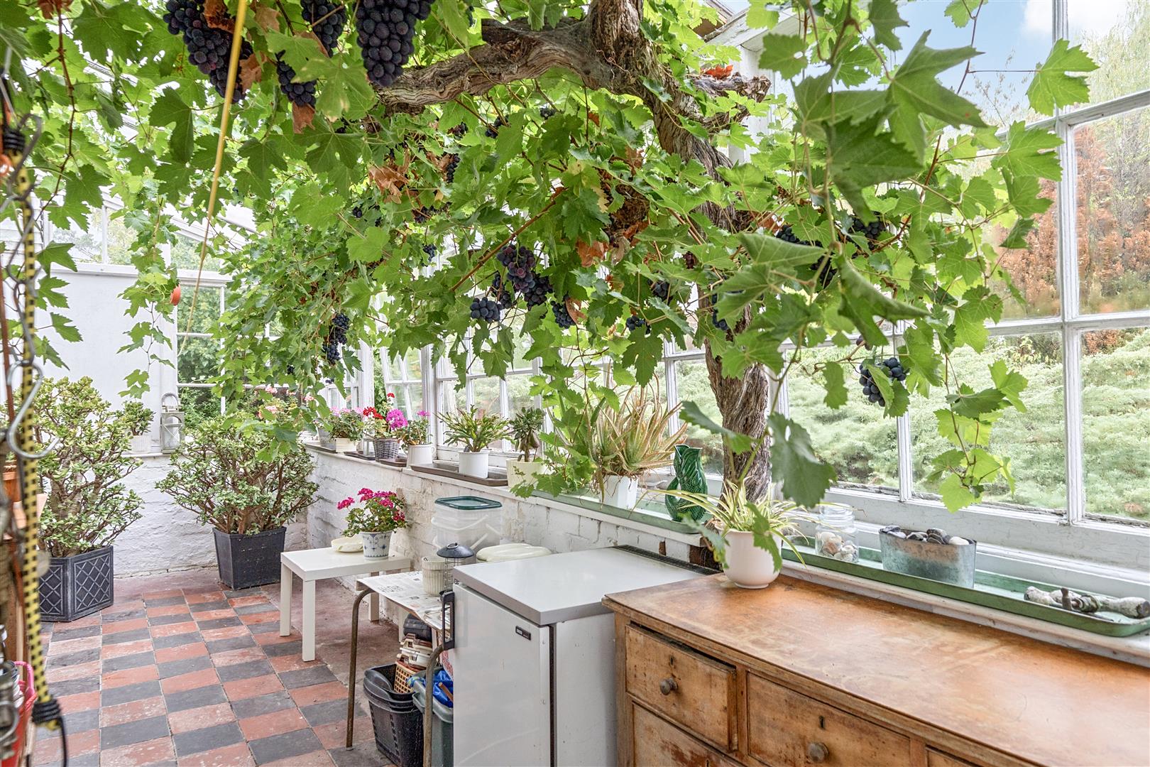 Conservatory - 7.4m x 2.3m (24'3" x 7'6" ) - Glazed windows to rear and side aspects, glazed roof, feature real life vine, radiator, power points and opening leading to utility room.